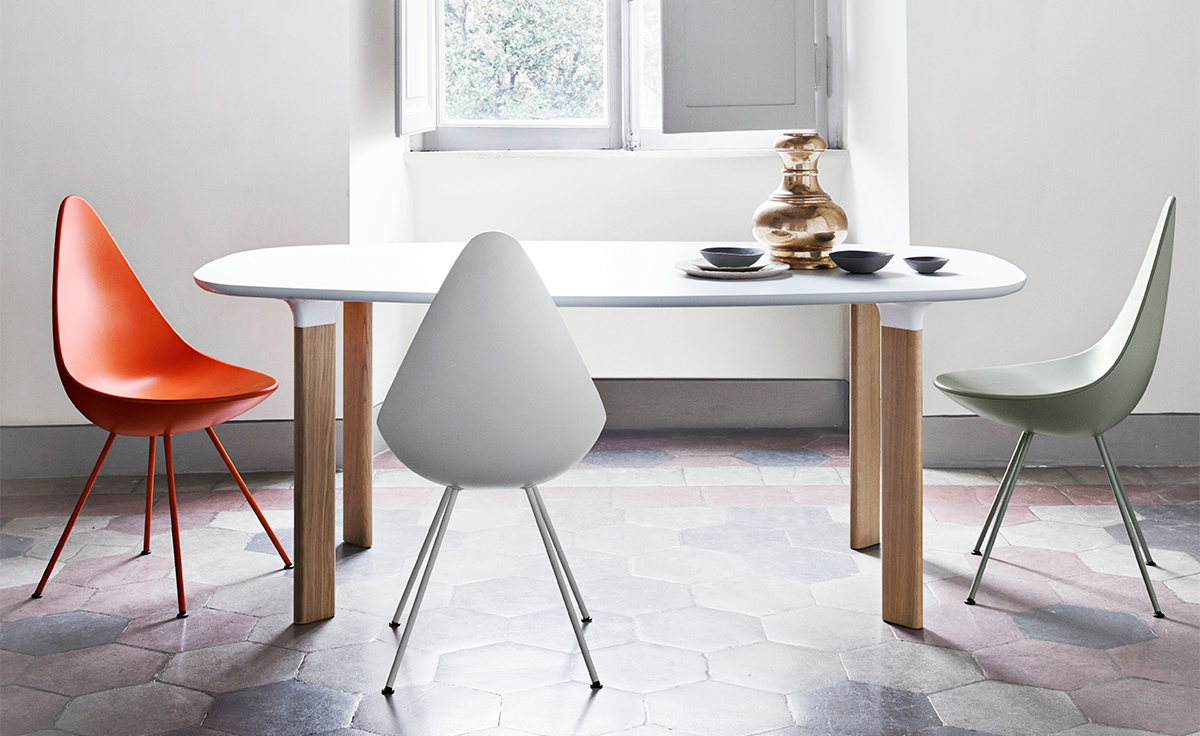 在“沉寂”50多年后,椅子现在重新上市。这把小椅子有着非常大的个性,清新并充满活力,稀有的传承。背面的设计结合了一个温暖的拥抱和自由运动,从而产生一个令人惊讶的舒适度。阿恩·雅各布森是非常富有成效的建筑师和设计师。他与弗里茨·汉森的合作可以追溯到1934年。1952年,“蚂蚁”和“系列7”椅子产生,从而将雅各布森和弗里茨·汉森的名字载入到家具的历史。1950年代末,阿恩·雅各布森设计了哥本哈根皇家酒店,并把蛋,天鹅,天鹅沙发和3300系列沙发带到设计世界。阿恩·雅各布森曾经并将永远是一名令人欣赏和杰出的设计师。他的家具和其他设计工作已经成为国内外遗产。“水滴椅”塑料椅子有四条不锈钢腿,镀铬或粉饰,以便与外套匹配。塑料外套提供一系列颜色,并提供与之颜色相匹配的羊毛垫块。"