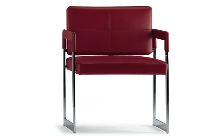 "Leather皮革椅系列家具线条干净简明,“X”交叉造型或者“H”造型脚架支撑着坐垫,新颖独特,由Jean-Marie Massaud设计。它采用外露的金属架,有三种不同的做工,座椅为聚氨酯泡沫材料,靠背较低,坐垫宽敞。有两种面料可供选择:天然皮革和纺织面料。两种款式都有皮革和染色纺织面料的扶手和同款的靠枕。沙发椅的造型形式严谨,它的特点和个性特征与Poltrona Frau现代室内家居的设计非常统一协调。