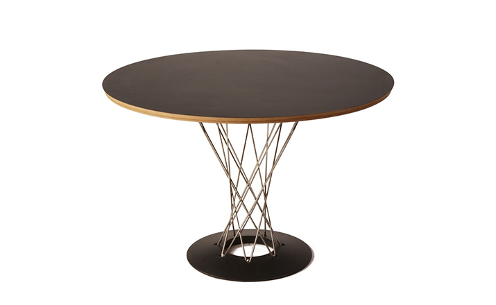 Cyclone Dining Table(旋风餐桌)由日本裔设计师Isamu Noguchi(野口勇)在1953年设计。野口勇非常擅长利用材料的天然特性,他的设计总让人感觉像是各类材料自然搭配在一起,而且不失完整。 野口勇餐桌(Sable Noguchi Dining Table)的桌面由15层的天然木皮压合而成,餐桌架是多根金属枝焊接而成,再配上沉重的铸铁底座,一件现代艺术家具就诞生了。这件标志性的设计被人称为“飓风”。