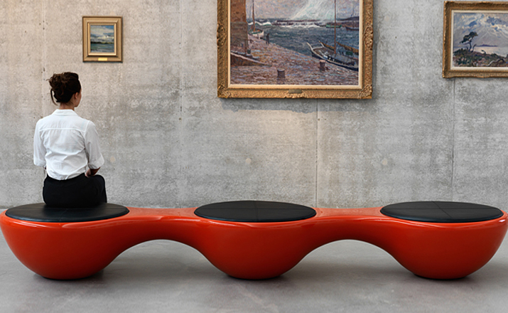 瑞典设计师Jangir Maddadi设计的这款联合座凳系列,可分为双座,三座及多坐,我司主要推出两座及三座,分别为:Union 2-seater Bench(联合双座凳)和Union 3-seater Bench(联合三座凳)。大家都知道,一般的座椅都是可以一个人或多个人一起坐,相互之间都不会受到影响。而这款连体休闲座椅却不同,外形很像一只陀螺,使用起来很像一个不倒翁,上面最多可以坐四个人。但是设计师并没有将这样的座椅让它们独立出现,而是用三张同样的座椅链接在一起,并且形成一个90度的直角,这样无论是陀螺还是不倒翁,都会很稳定的供给我们使用。当然,理论上来说,生产这种椅子,不仅可以做3件连体,4个,6个……都可以做。只是要考虑运输问题,或许3个是最完美的。这款连体休闲座椅不仅外形很优秀,而且还更加实用,使坐在上面的人有更多的空间,而且还可以保持面对面的互动。