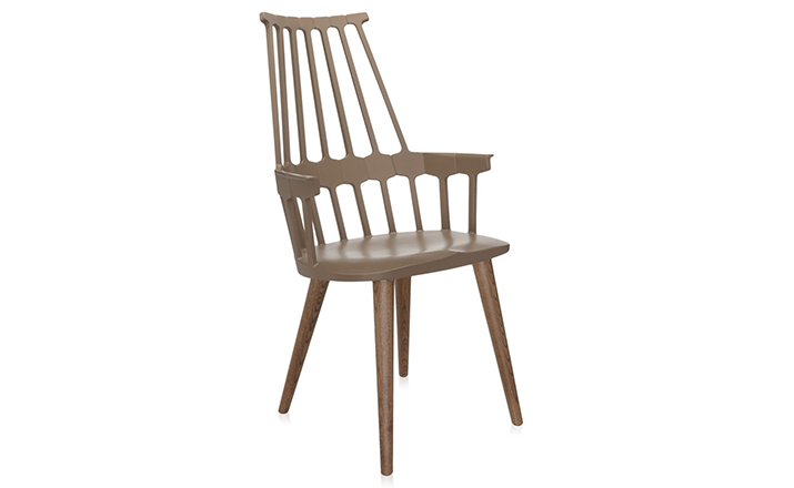 温莎风格椅被冠以乡村风格,但并非一成不变,在不同时期不同阶段又融入新的设计元素。Kartell的这款产品再一次享受重现经典的设计快乐,国际知名家居设计师Patricia Urquiola为温莎椅(Windsor Chair)打造了一个这款新的造型。回归十八世纪英格兰的辉煌时期“梳背”椅的特点,整个框架用亚光材质,靠背的7个分支结构朝着椅腰部位向下延伸,在一个加固六角形圆圈处与纤细的轴汇合,与椅座合为一体。聚碳酸酯材质的使用赋予COMBACK一种轻盈的质感和当代风格。浸透在黑色COMBACK梳背椅里的那一分淡定从容,能让人气定神闲,默默却又不留情面地将浮华虚荣隔在门外。因为不存在彩色光谱里,白色可以说并非真正色彩。纯白色Comback Chair梳背椅,唯美得让人难以抗拒。那种与世无争的清雅,好似刚刚落入凡尘的花瓣,昭示宁静与自然。这款Comback Chair 来自意大利的创新品牌Kartell,以发梳为灵感,回归18世纪英式风格,整齐对称的典雅扮相,表现出一份沉稳内敛的韵韵意涵。木质椅角的运用,让复古气息升华其中。配搭塑料椅身的现代风格特色,不愧为一份跨越历史的新时代作品。荣获2011年Wallpaper设计奖殊荣。