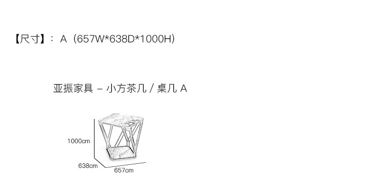 亚振家具 - 小方茶几 产品尺寸/示意图