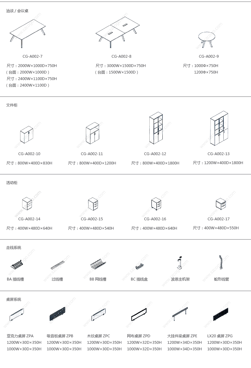2、整齐划一、人性方便的桌面铝合金过线系统; |
