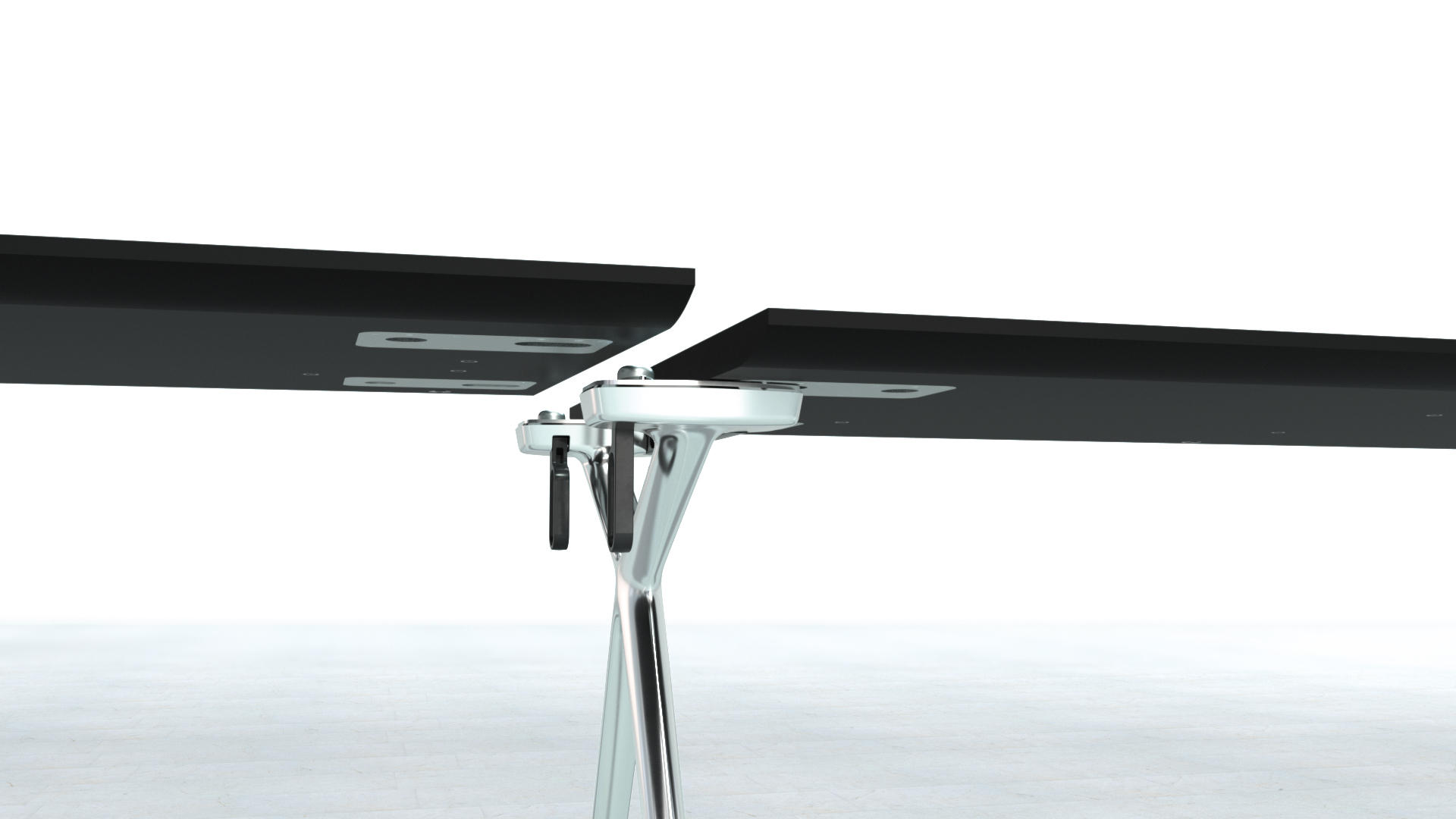 这款Conference-X最大的亮点就是:桌子腿是可以将两个桌面一起快速而轻松地结合在一起,而不需要借助任何工具。而这个专利技术的的连接关键是:桌子腿顶部处在固定锁,桌底有锁扣,以此保证绝对安全和稳定。这也很好的解决了会议台的多样性:从个人的工作桌到成排的会议桌,桌子形状、大小、都可以通过脚架来进行拼接.