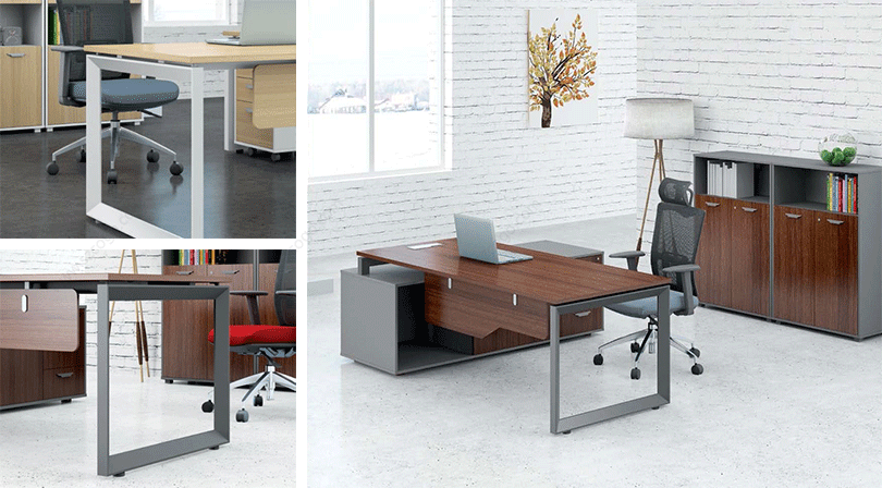 | 两种材质桌面和两种材质脚架可供选择,满足不同风格办公的需求。 |