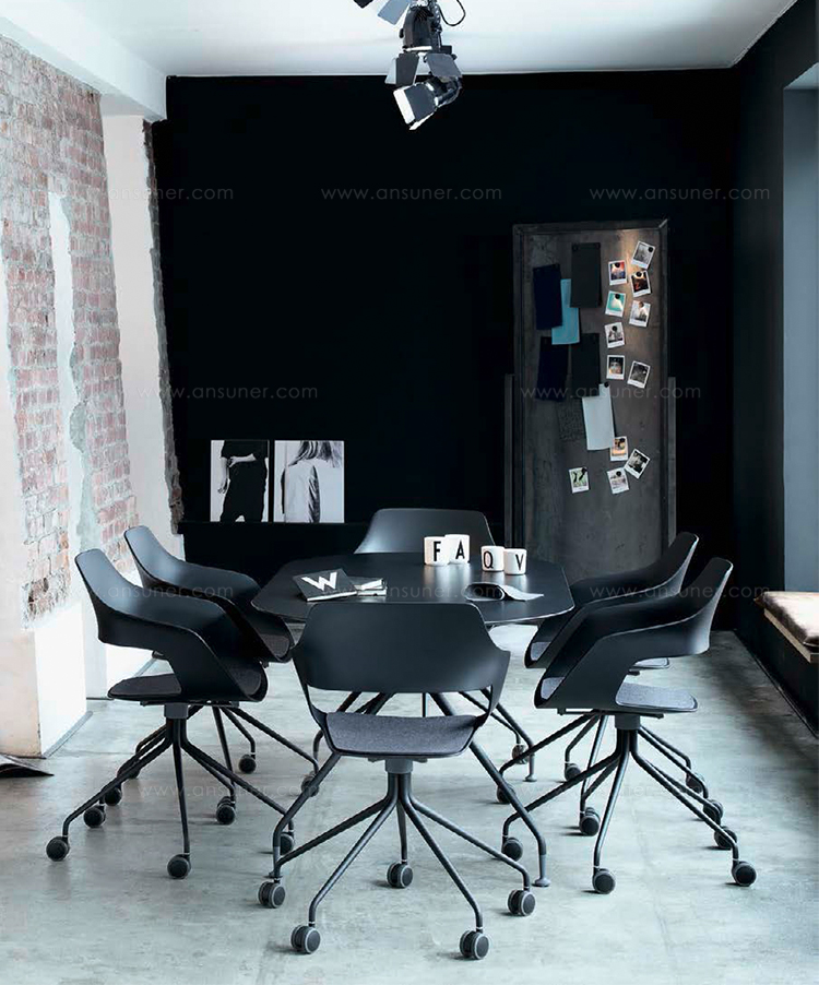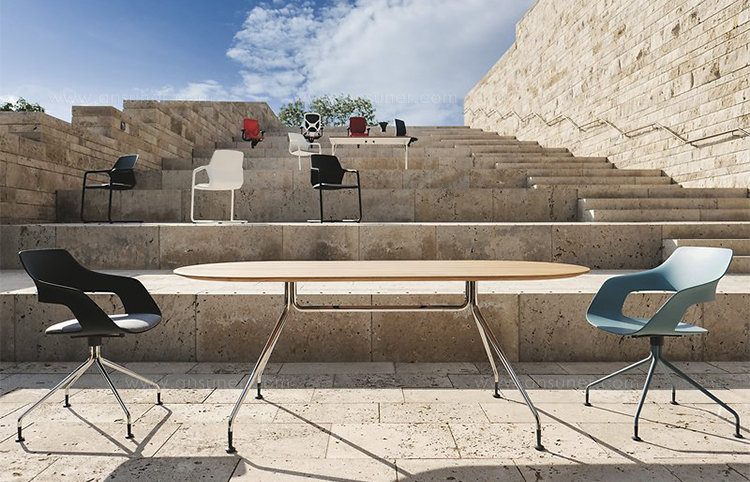 对于Wilkhahn来说,设计师马库斯Jehs和jurgen Laub已经设计出了一张椅子和桌子,这是一个完美的组合。它叫做Occo。Occo结合了巨大的通用性和大量的设计选项,设计语言清晰且可立即识别。背部和两侧的凹处的特殊形状允许椅子堆叠(当一个镀铬的、四腿的金属框架被选中时),同时也提供了高超的坐舒适性。座椅本身是非常坚硬的,但由于它的形状和不同的材料的不同,它的背部非常灵活。