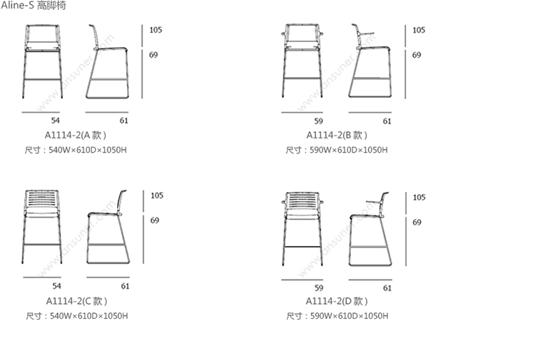 Aline 230/5 吧椅 系列尺寸/示意图