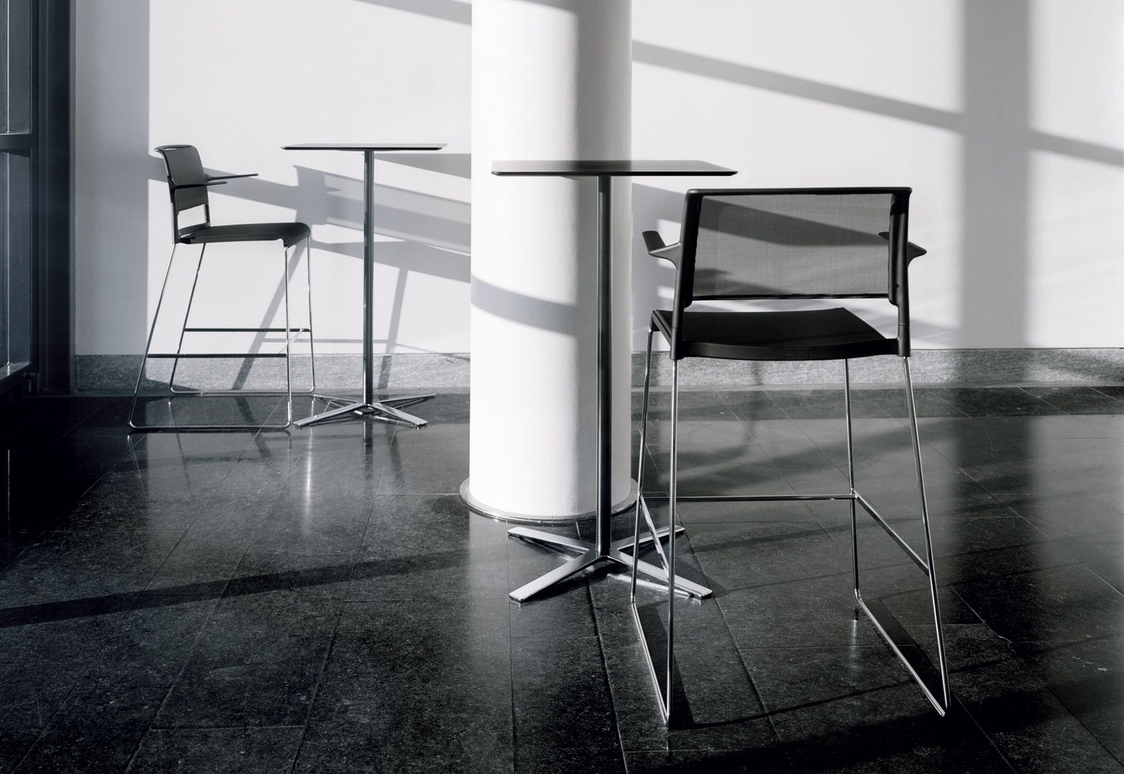 除了skid和转角座椅、工作台和酒吧凳子外,还提供了圆形和方形的矮桌、高台和高台座的桌子,以及双座的长方形桌子。对于专业用途的非正式区域来说,它的时尚和透明的外观和感觉是很理想的:销售室、顾客支持和等候区、小酒馆和自助餐厅,或者是在家里的桌子和餐厅。由于座椅的抗菌织物和容易护理的、结实的桌面,对水疗和保健领域来说是极好的选择。不管布置的是什么,家具都能给房间提供一种轻松的,轻松的吸引人的方式来促进非正式的谈话。它既具有吸引力又很舒适,同时具有复杂的功能。
