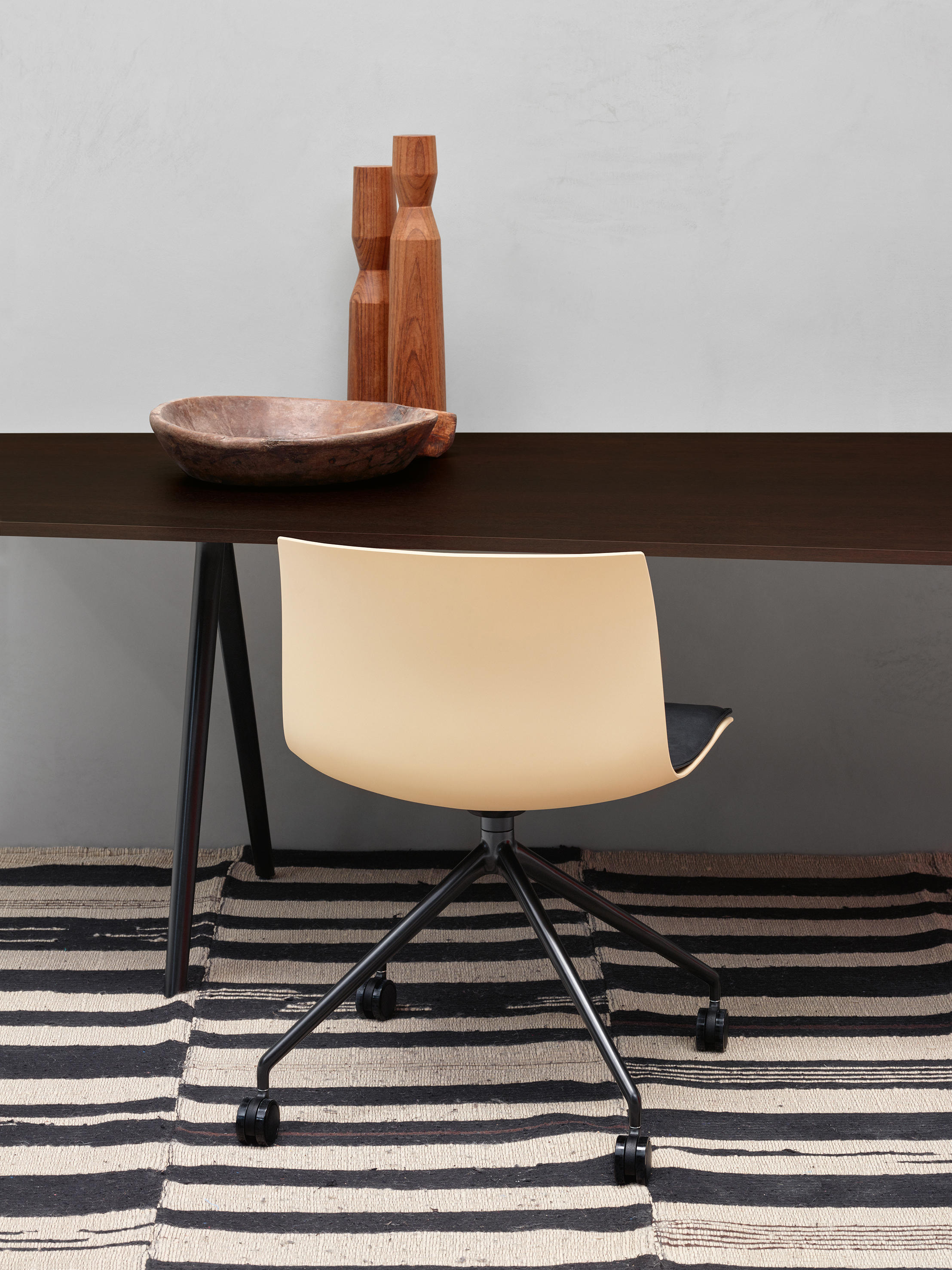 Catifa 46是Catifa 53的小妹妹。同样光滑的外形,清爽,休闲的效率,专为合同使用而设计,需要稍微缩小的空间。极其灵活,Catifa 46扩展了饰面,底座和配件的调色板,以便定制,以适应几乎无限的合同应用程序,而不会改变其基本特征。