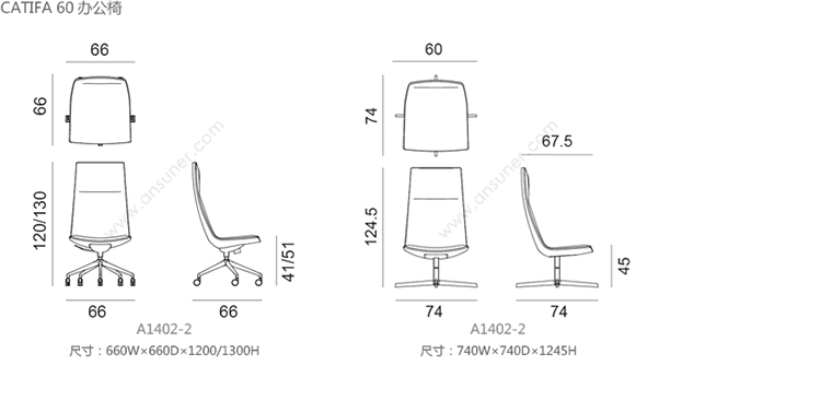 Catifa 60 办公椅 系列尺寸/示意图