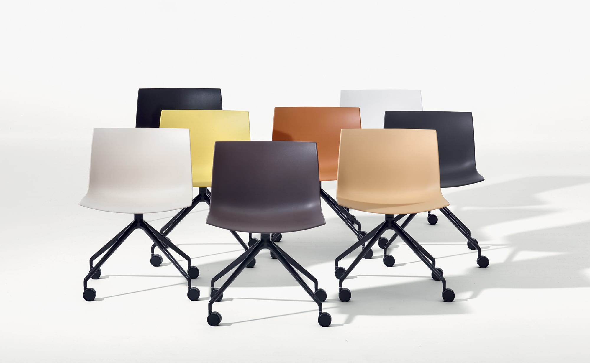 Catifa的标志性形状在使用中无处不在。 该系列产品在住宅和合同环境中都很舒适,有多种颜色,材料和结构可供选择。 Catifa Up是2017年的新款,比Catifa 53提供更高的靠背,新设计中增加了可选扶手和毛绒衬垫,为会议室,工作场所,家庭办公室和会议室提供了庄严的舒适性和支撑。 一系列新的装饰选项为不可磨灭的设计带来视觉上的吸引力。 通过Catifa Up,优雅和舒适的团队完成工作。