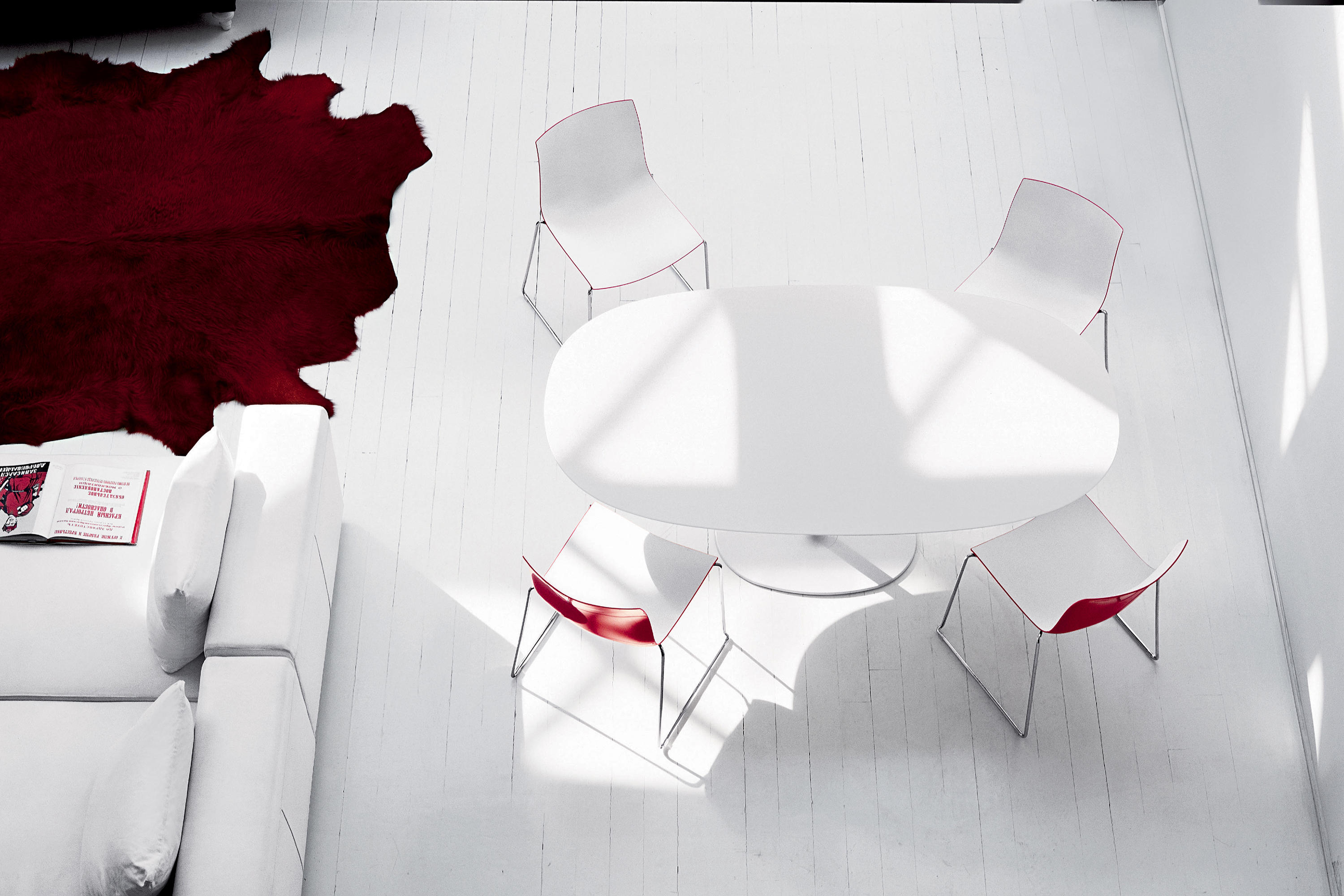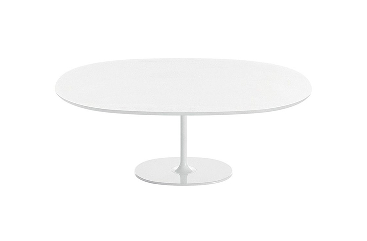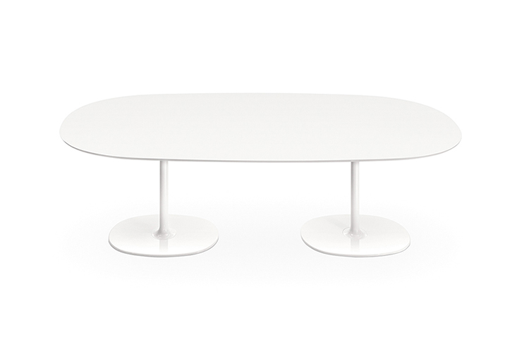 餐台带双椭圆形底座,白色有光泽或黑色哑光粉末涂层钢,顶部为白色压花MDF(厚2.5厘米)或层压板FenixⓇ(厚2,6厘米),有不同尺寸可供选择。 身高74厘米。
