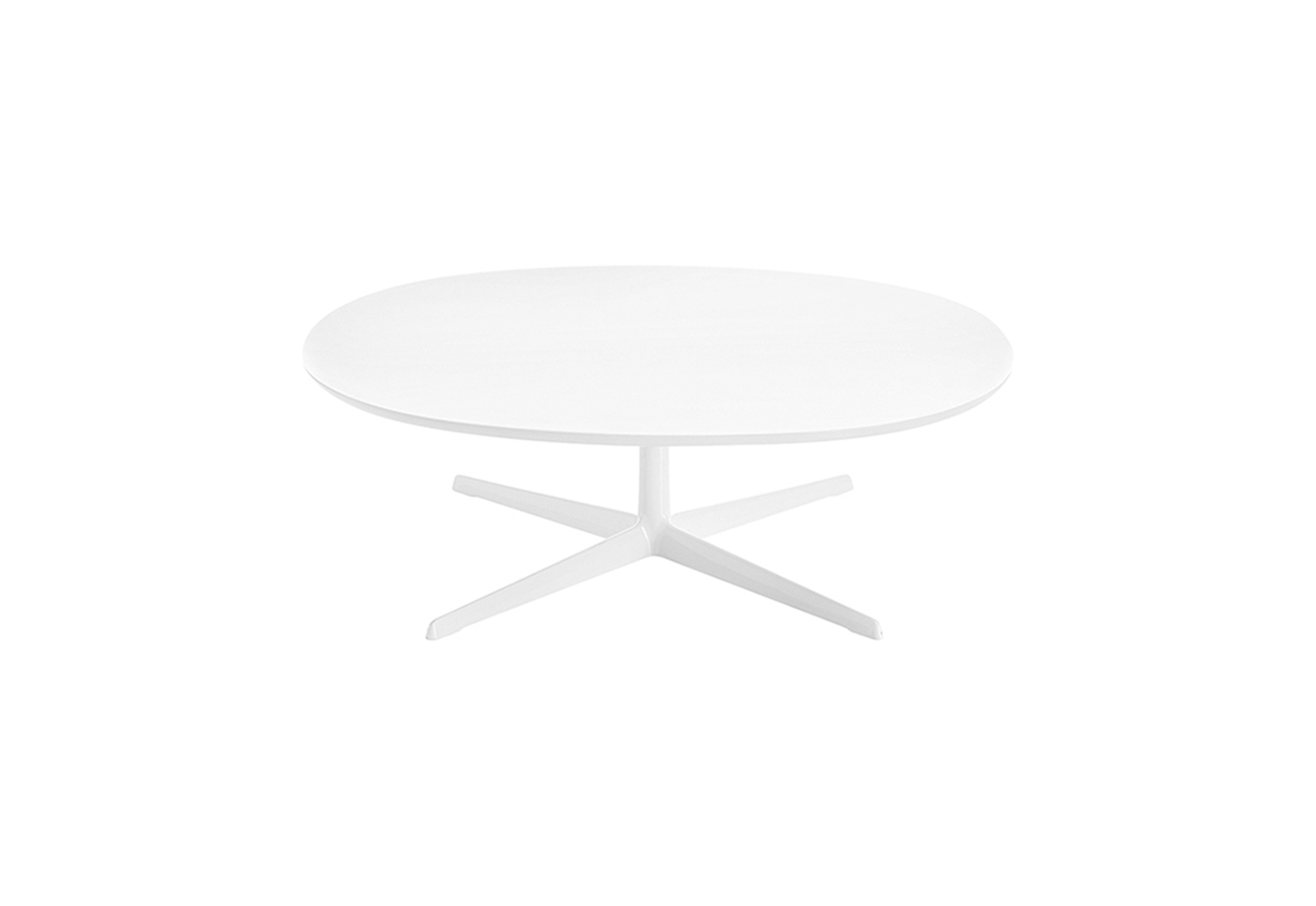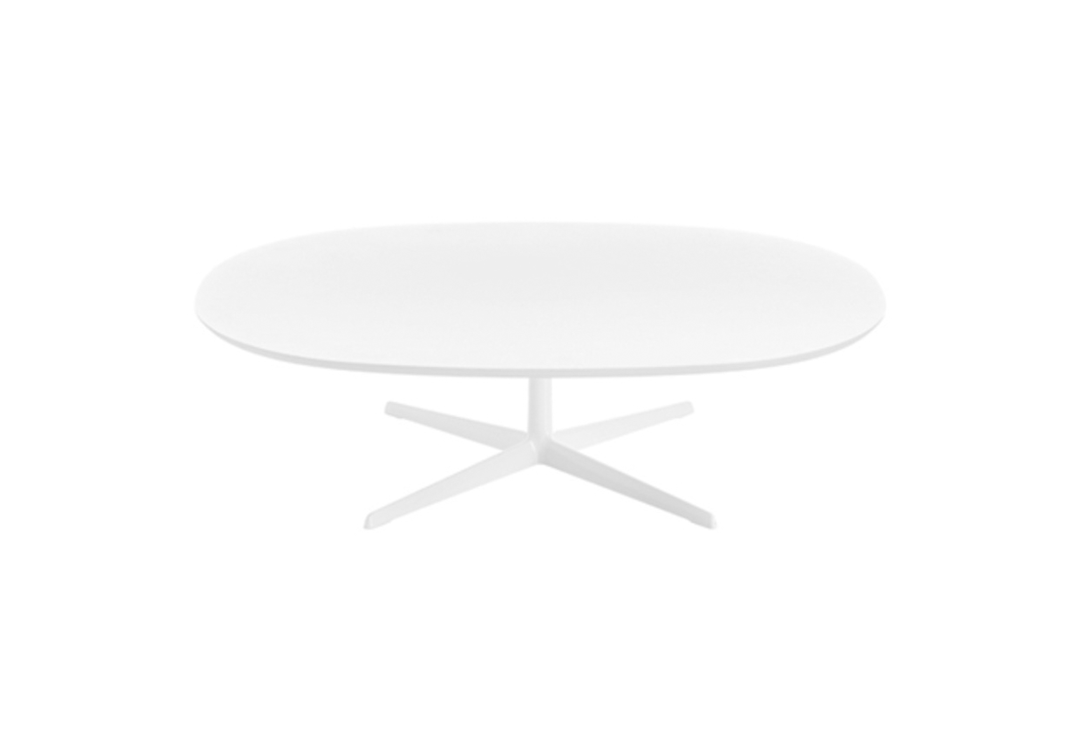 咖啡桌粉末涂层铝4路基座和椭圆形或圆形顶部白色压花MDF(厚2.5厘米)或层压板FenixⓇ(厚2,6厘米)。高度:35厘米。