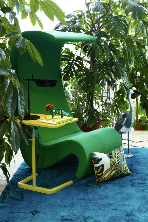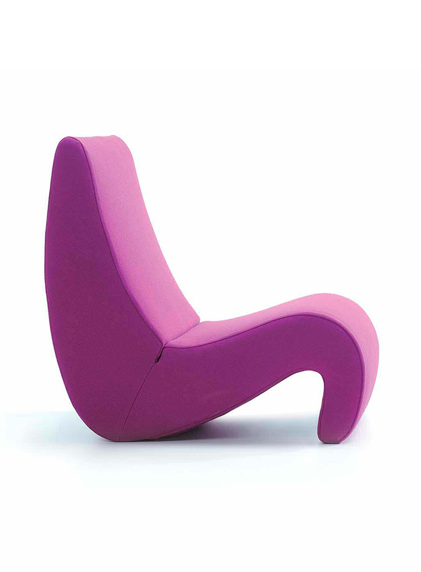 椅子的Amoebe Highback版本有一个灵活的靠背,可以在保姆的头部弯曲,形成一个雕塑的顶篷。 这种醒目的口音赋予椅子一种住所和隔离感。