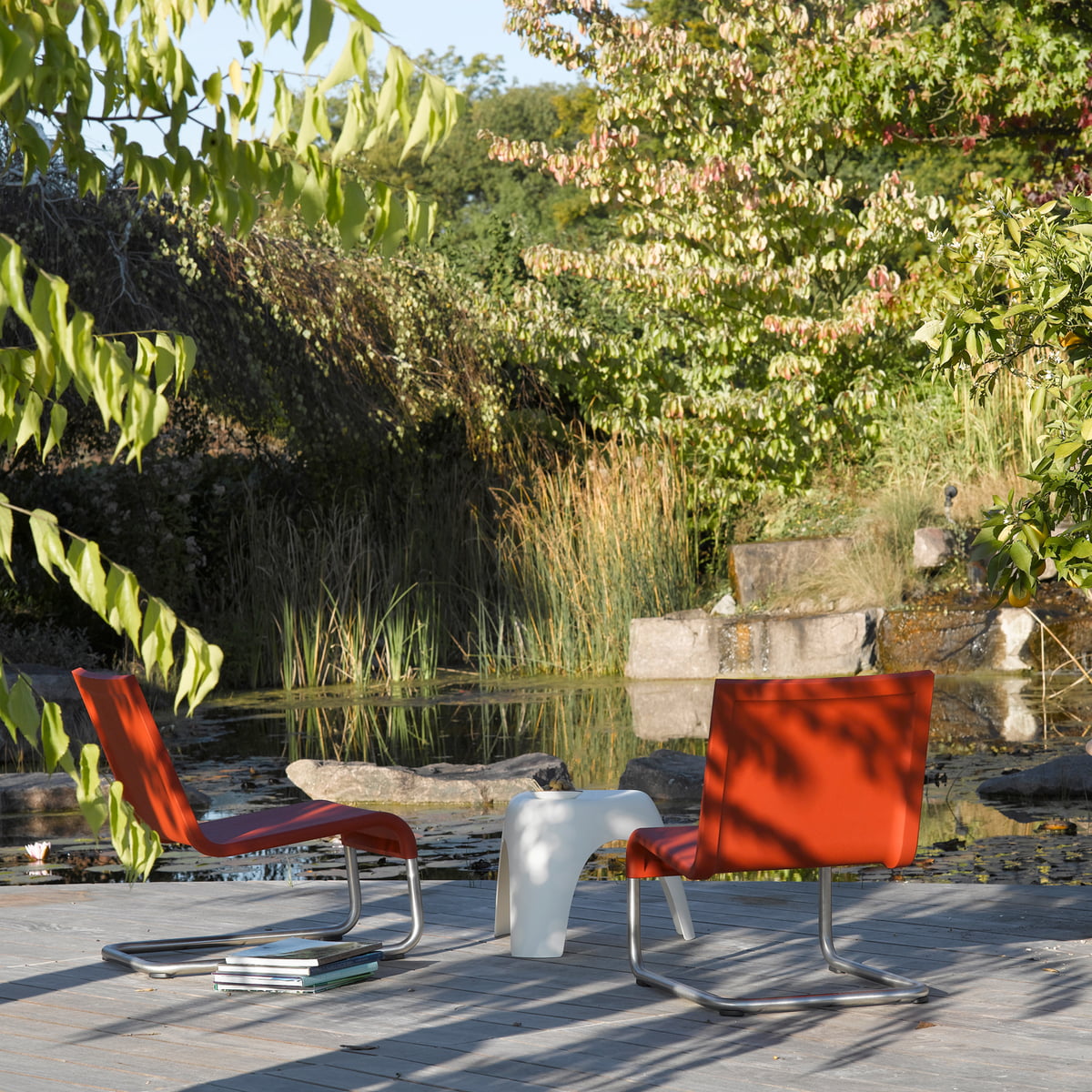 秉承Maarten Van Severen设计特色的审美严谨性,.06休闲椅的舒适性仅在使用时才会显现。 柔软的外壳由整体皮肤泡沫制成,后座采用一体式板簧,可提供动感的座椅体验。 由于采用不锈钢管状框架,.06也适合户外使用