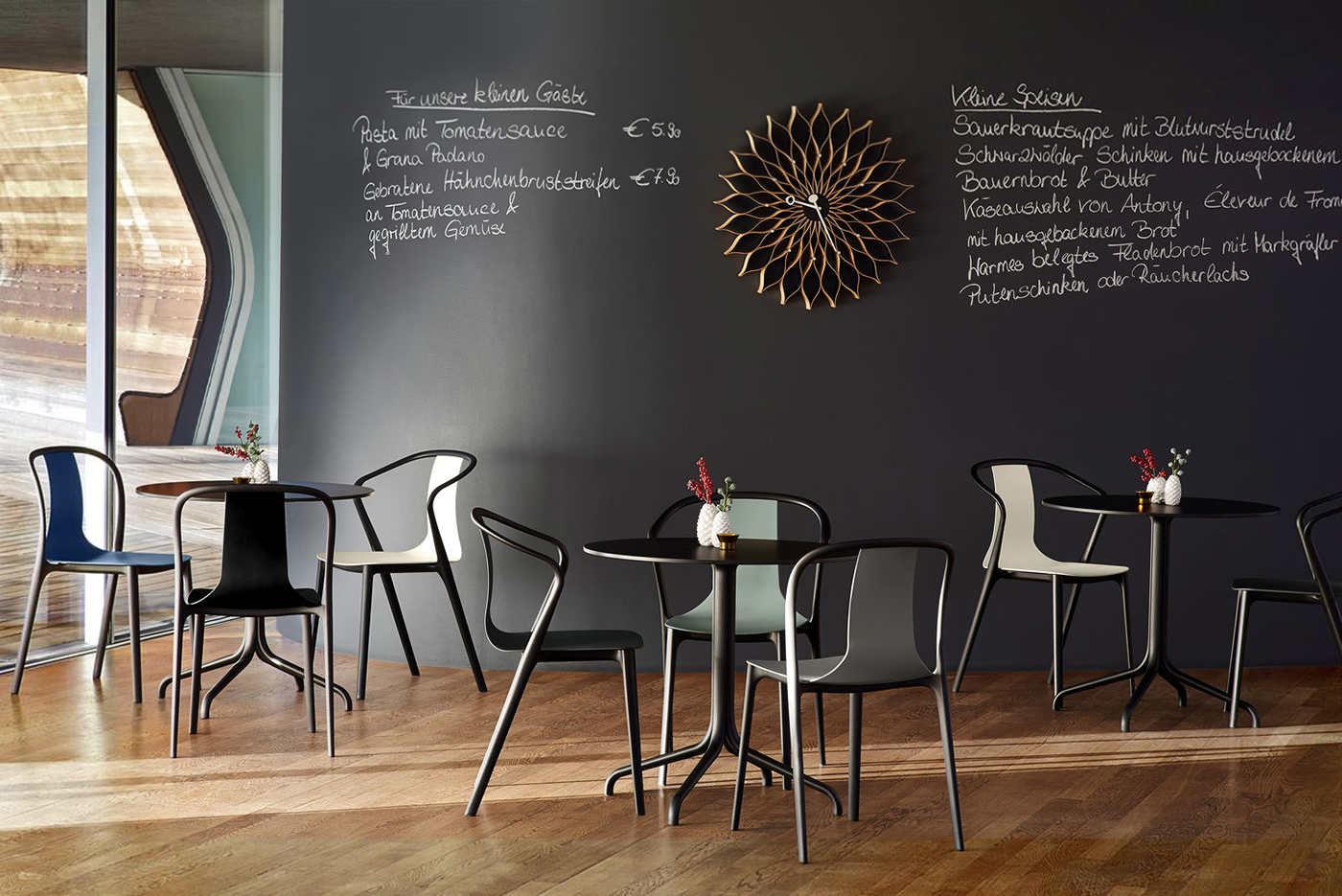 优雅的Belleville Table by Ronan和Erwan Bouroullec以经典的小酒馆餐桌为蓝本,提供多种不同的款式。 较小的小酒馆桌子有圆形或方形顶部,有不同的版本,有些适合室内和室外使用。 Belleville Table还配有各种宽度和长度的矩形顶部。