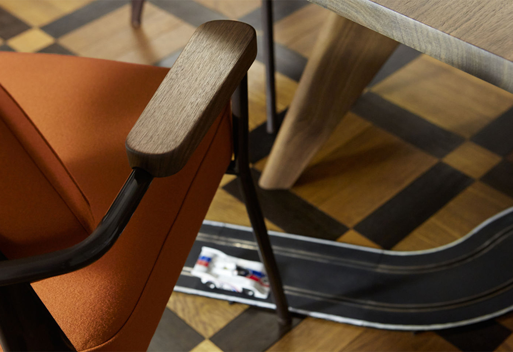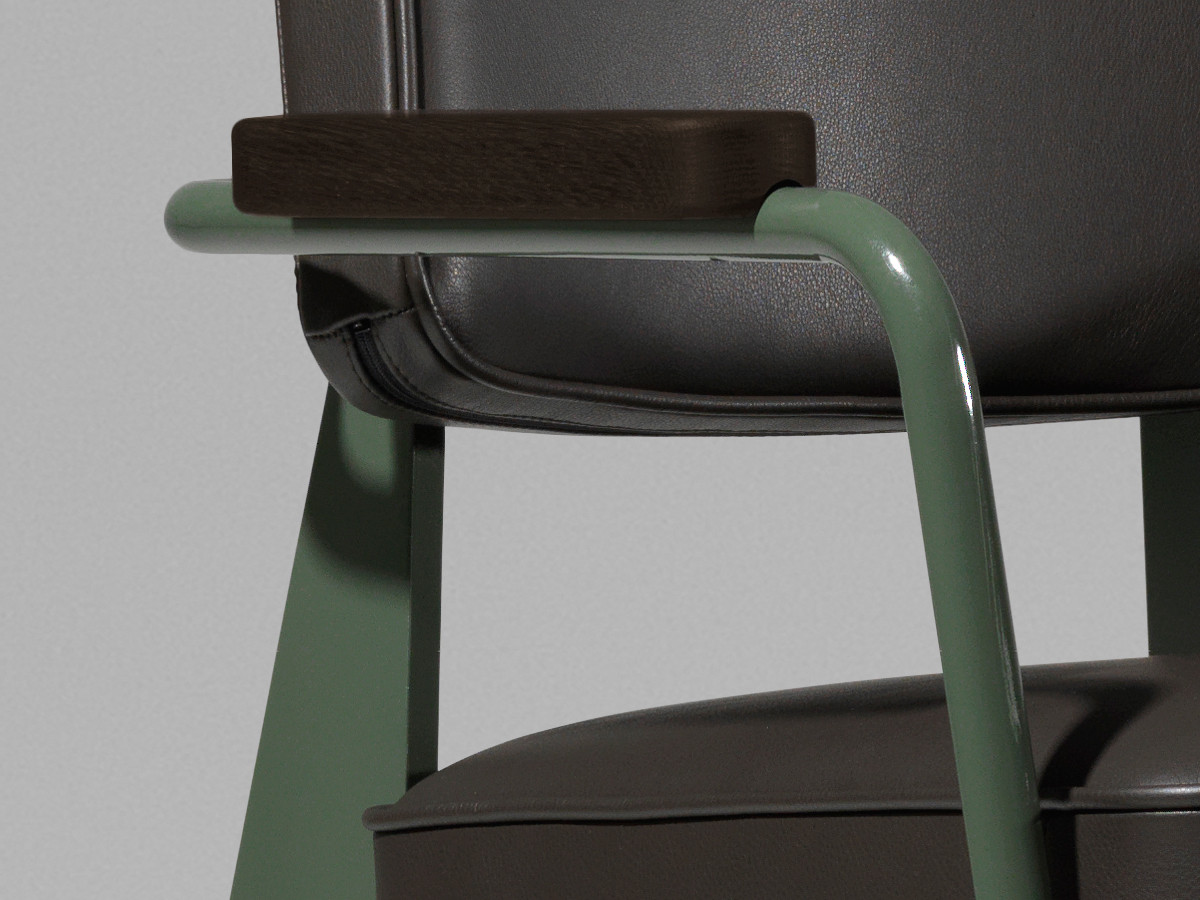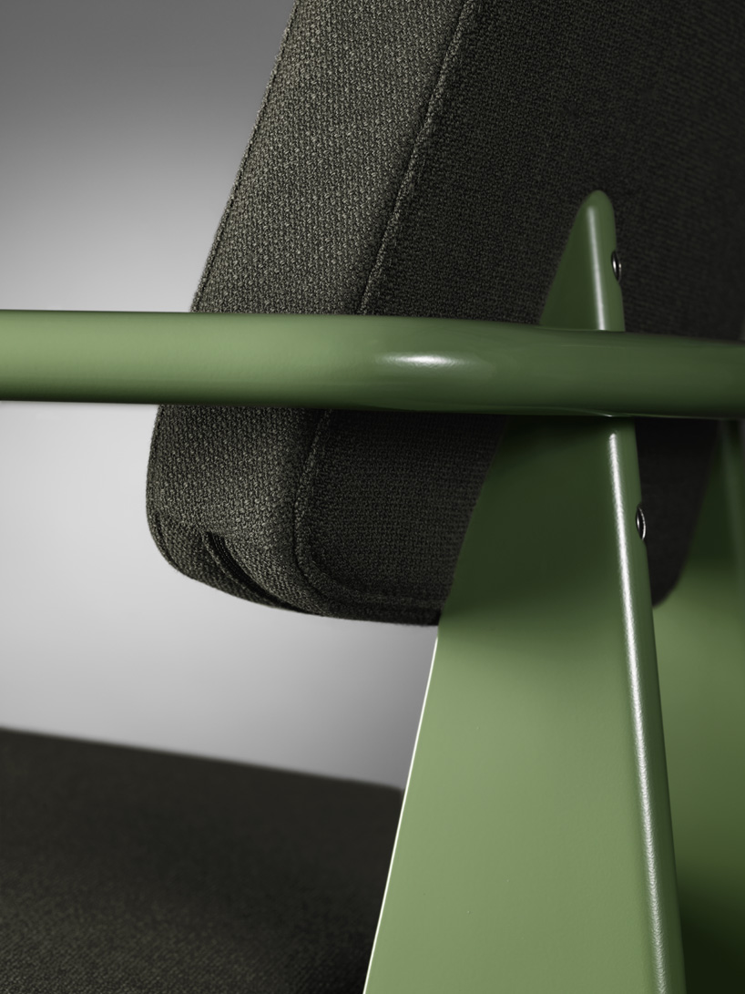 Fauteuil Direction特别适用于餐厅座位或家庭办公室的扶手椅。 该设计反映了JeanProuvé的特色美学词汇,它基于结构要求。 舒适的软垫扶手椅配有各种不同颜色的织物或皮革罩。
