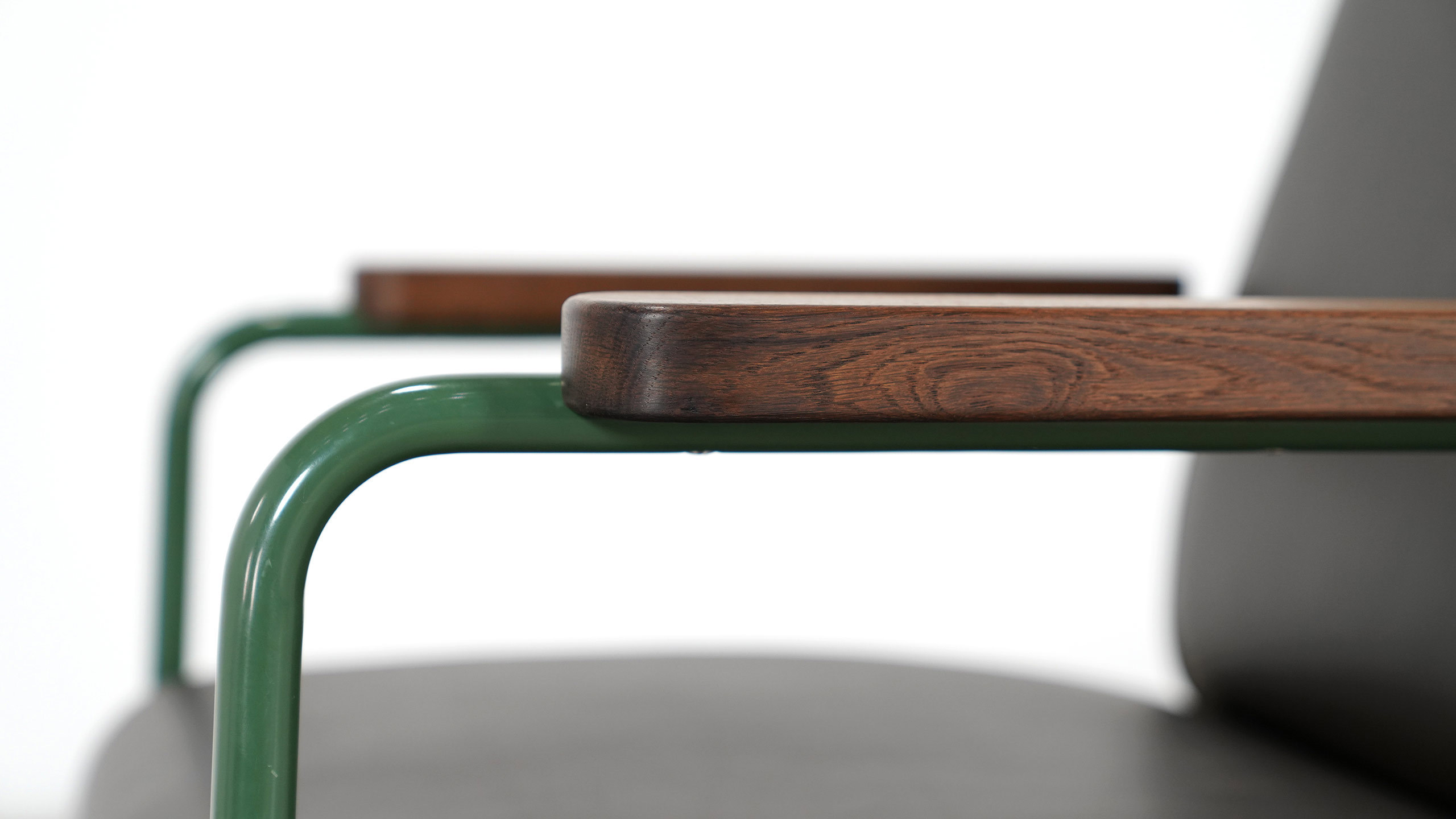 Fauteuil de Salon由JeanProuvé开发,是他设计独特结构美学的典型代表。 扶手椅的低调特色适合各种各样的内饰,其充足的室内装潢和涂油的实木扶手散发出诱人的舒适感。