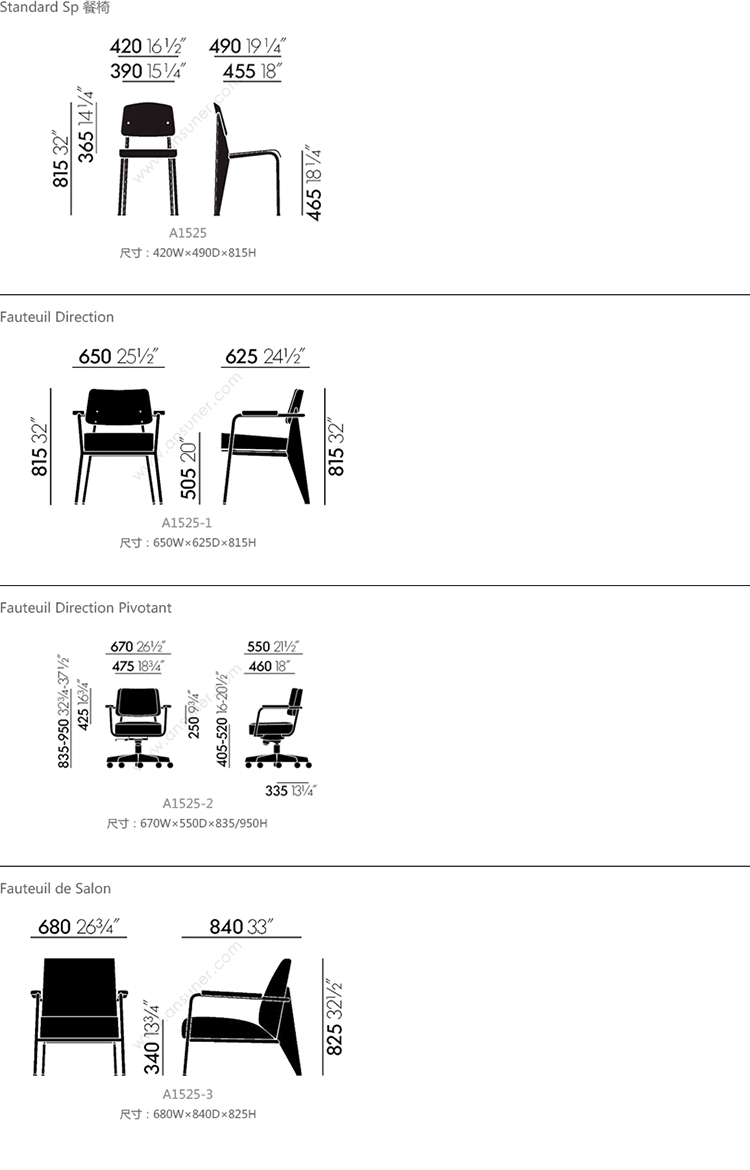 Standard SP 餐椅 系列尺寸/示意图