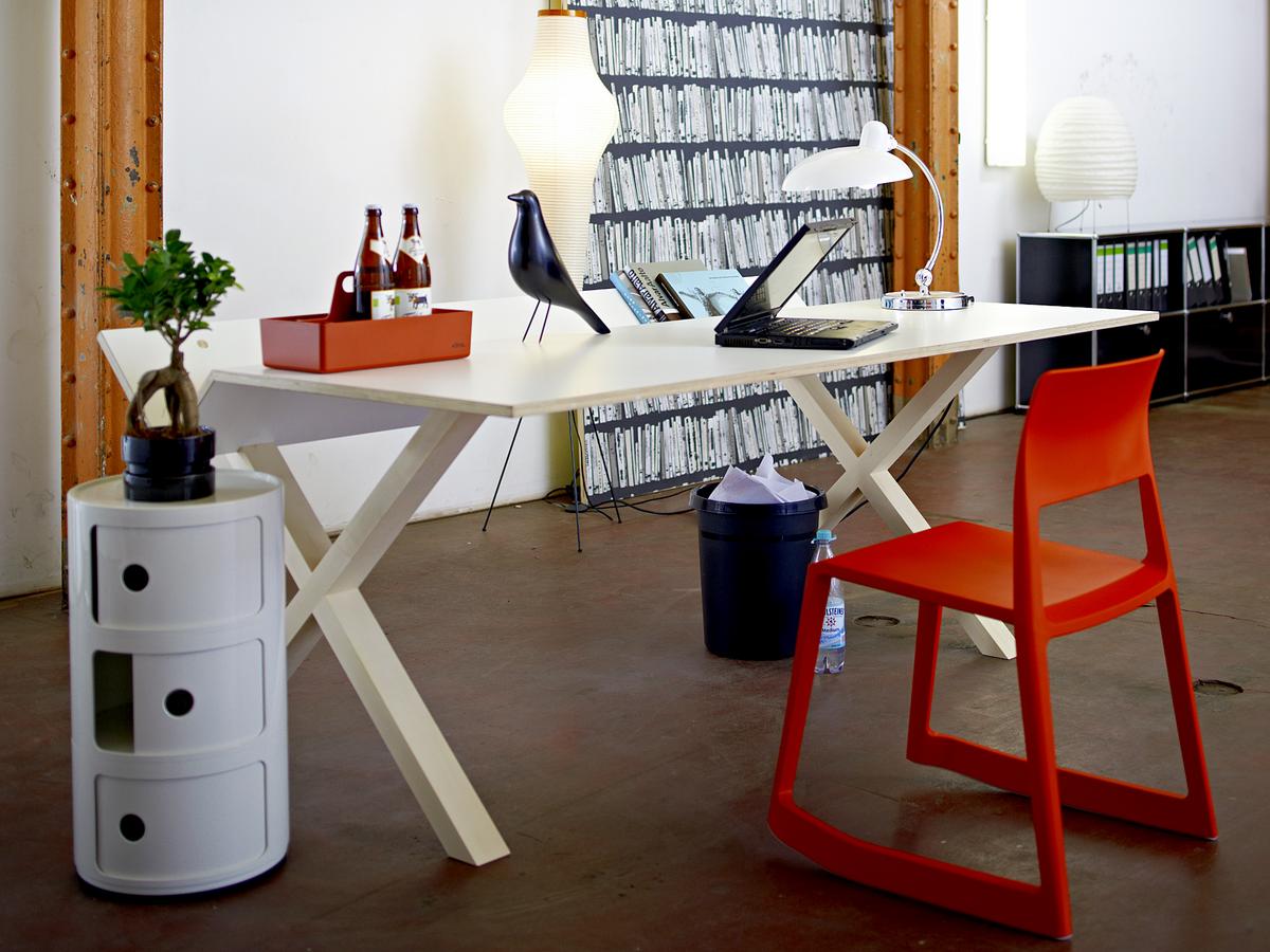 多用途椅子Tip Ton by Vitra代表了一种全新类型的椅子,因为它可以作为第一个坚固的塑料椅向前倾斜并邀请您摇滚,这为他赢得了他的名字。 Tip Ton由Edward Barber和Jay Osgerby设计,设置了骨盆和骨骼,以促进血液流向腿部和腹部和背部区域的氧合作用。 所以Vitra椅子Tip Ton也适合长时间坐在办公桌前。 Tip Ton满足了真正的多用途椅子的所有期望:例如,作为可堆叠的椅子,它也可以在食堂中大量使用,并且根据颜色,Vitra Tip粘土进入起居室,厨房或露台有时候谨慎,