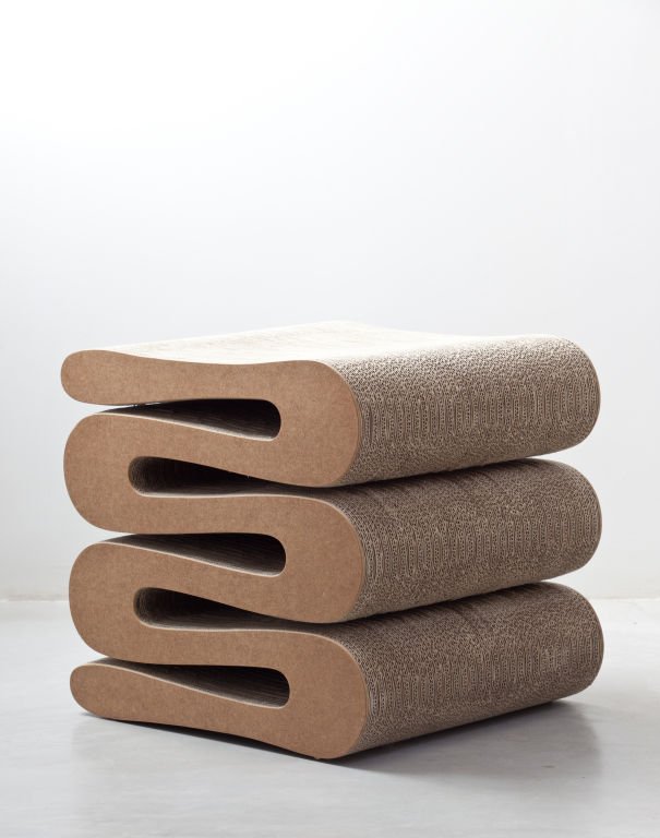 Wiggle Stool是Frank Gehry 1972年家具系列“Easy Edges”的一部分,该系列成功地为纸板等日常材料引入了新的美学尺寸。 标志性的凳子结实耐用,为任何室内装饰增添了醒目的音符。
