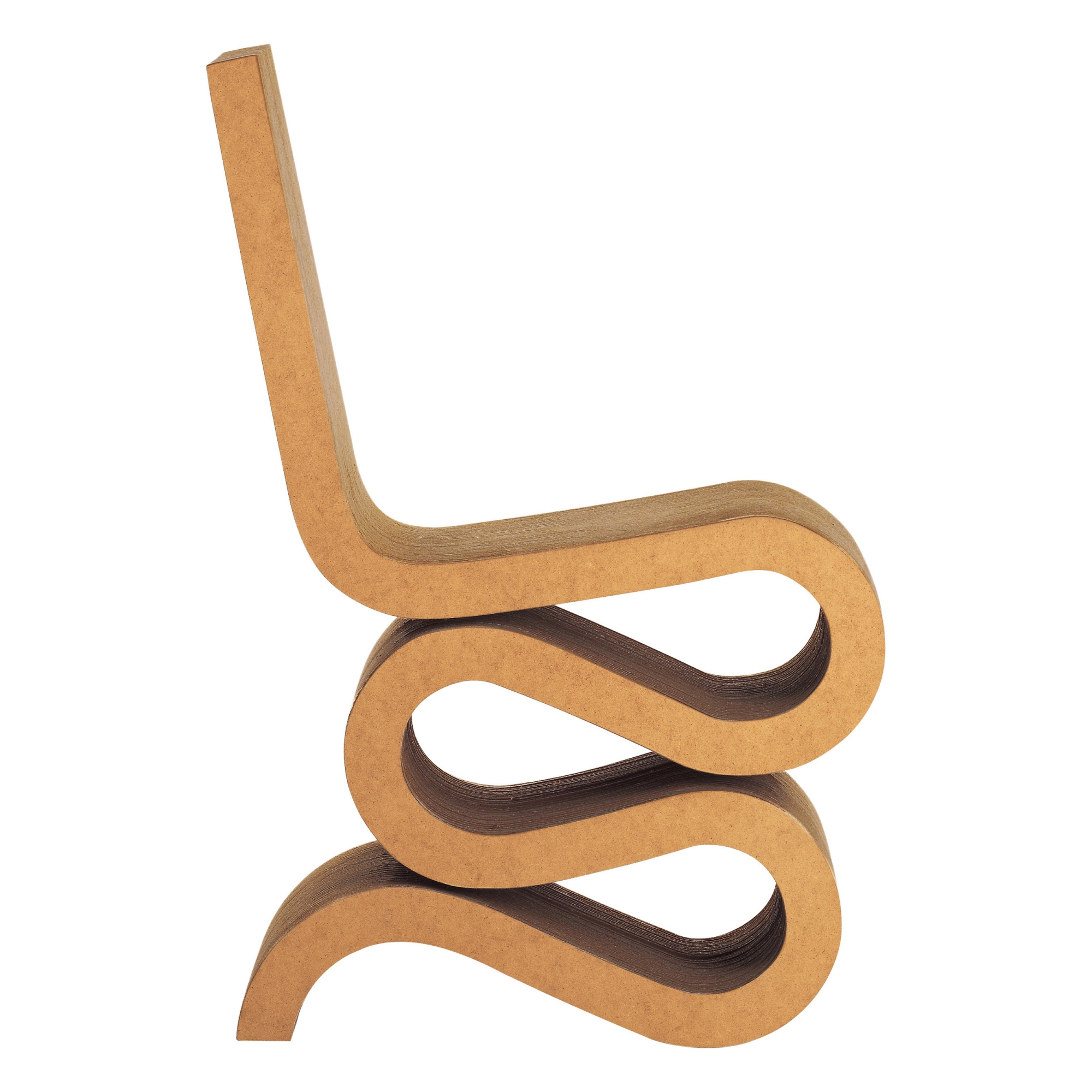 The sculptural form of the Wiggle Side Chair makes it stand out. Although surprisingly simple in appearance, it is constructed with the consummate skill of an architect, making it not only very comfortable but also durable and robust.