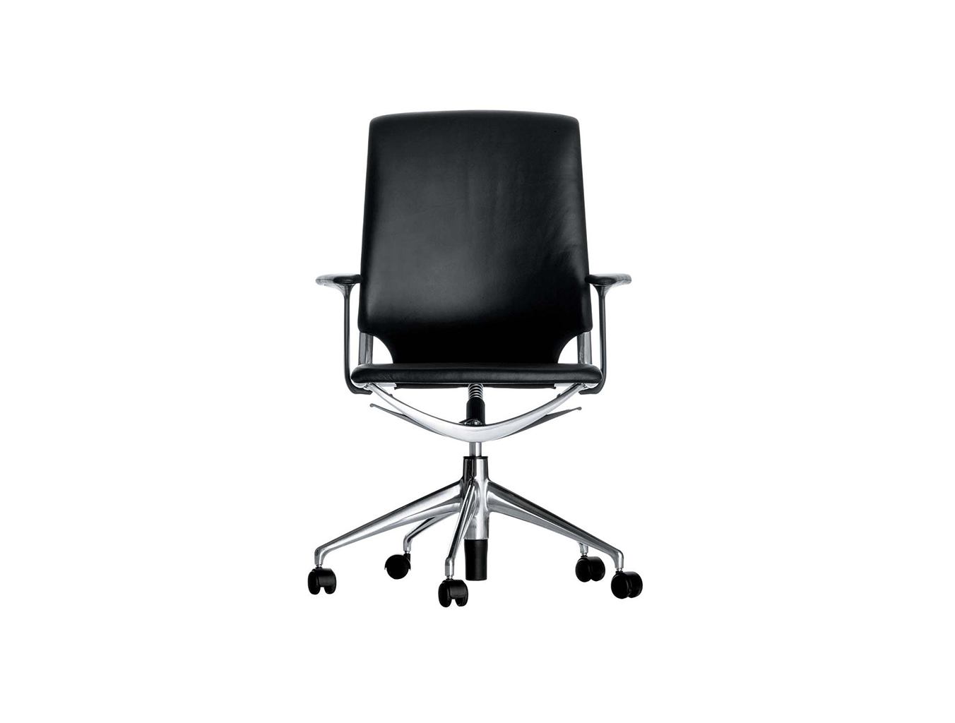 Meda Chair代表舒适,技术和美学的最佳组合。 其同步运动及其倾斜和可锁定靠背与座椅衬垫和优雅的装饰元素相结合,为用户提供卓越的舒适感。 座椅的装饰有皮革或织物可供选择,而靠背则可选择皮革或网眼织物。