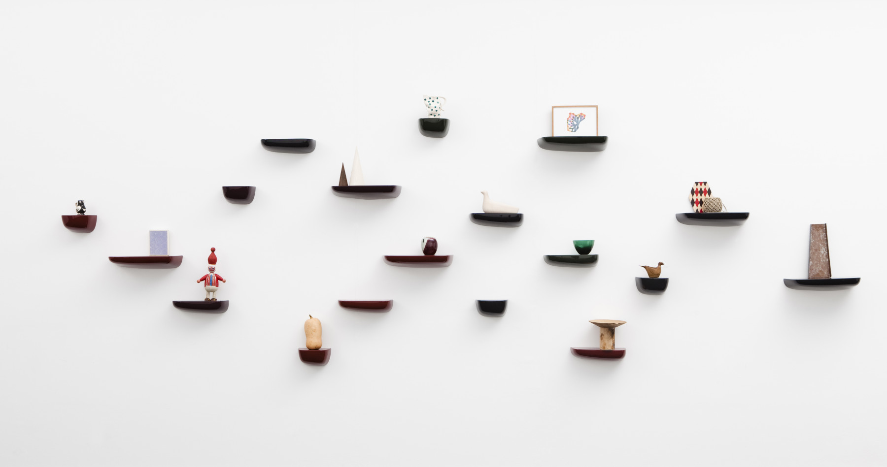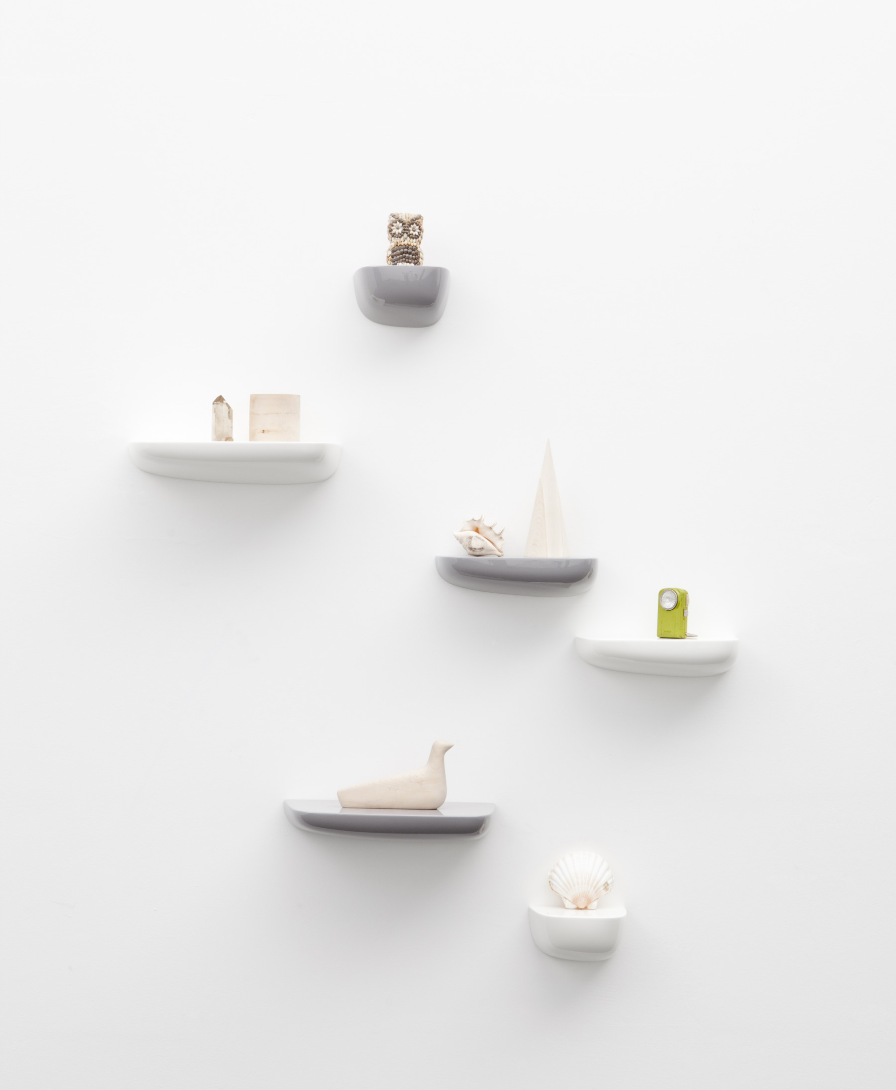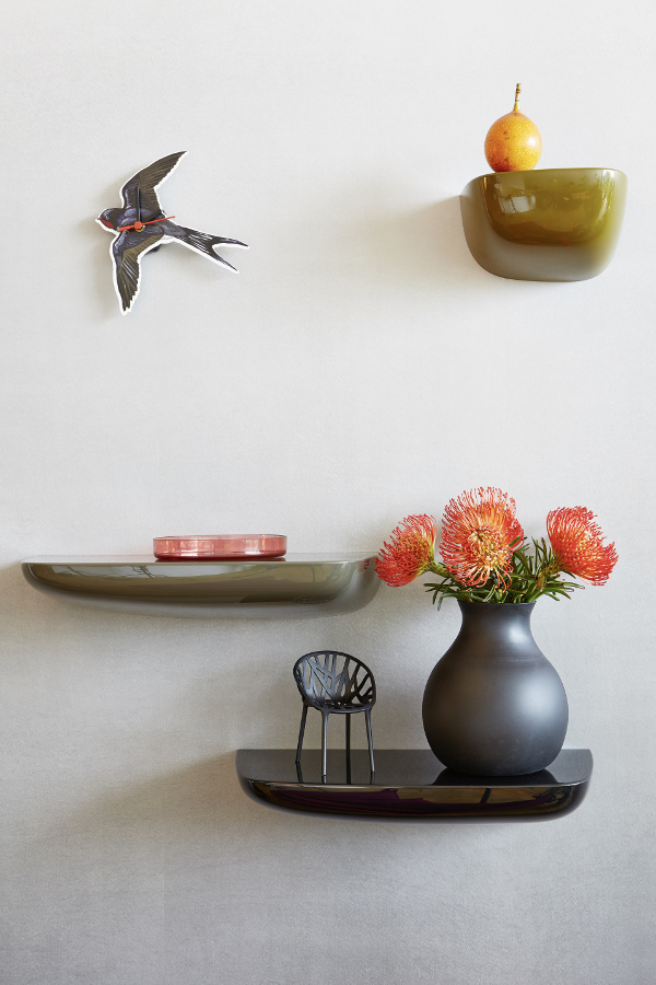 Ronan和Erwan Bouroullec的Corniches可以作为实用的储物壁架或装饰墙装置。 例如,它们可以用作前门旁边的钥匙架,可以将我们需要的所有东西放在浴室的指尖,或者用于少量物品的基座。 Corniches由各种形状,大小和颜色的高品质塑料制成。