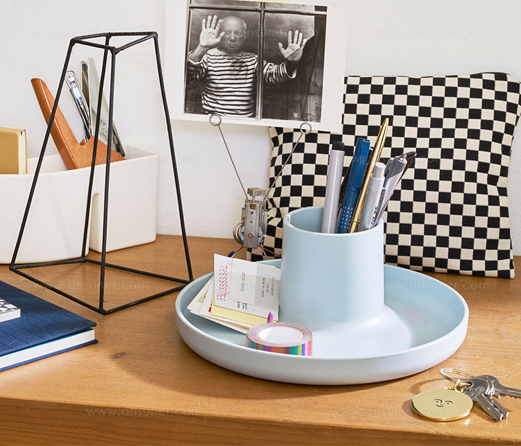 O-Tidy是一种实用的多功能存储容器。 该设计不仅提供托盘和杯子功能,而且还将其简单的形状组合成一个新的,完美比例的物体。
