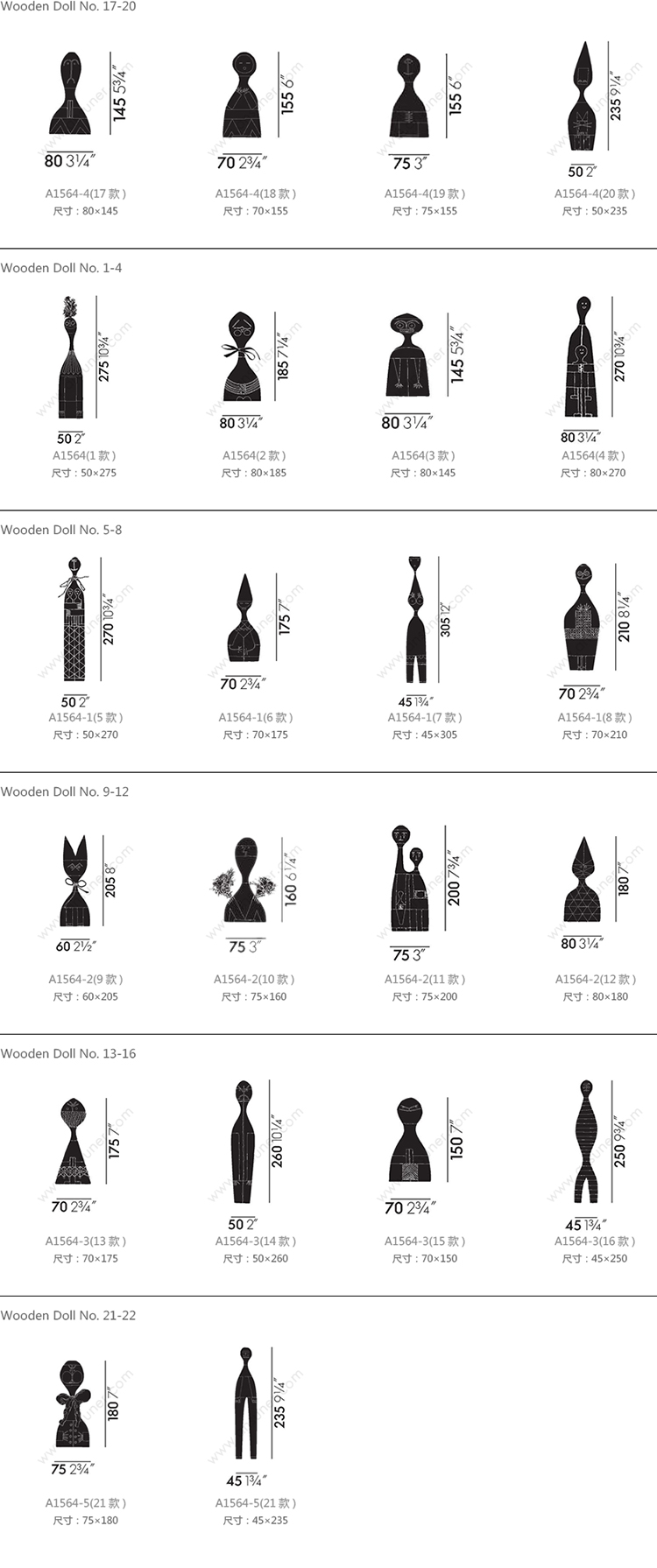 Wooden Doll No.17-20 系列尺寸/示意图