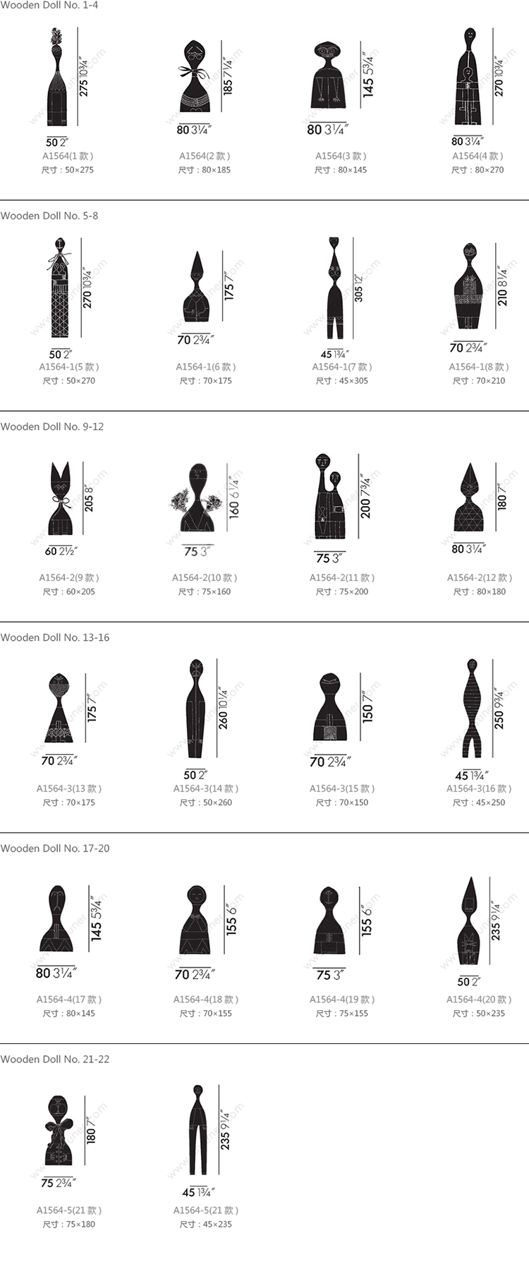 Wooden Doll No.1-4 系列尺寸/示意图