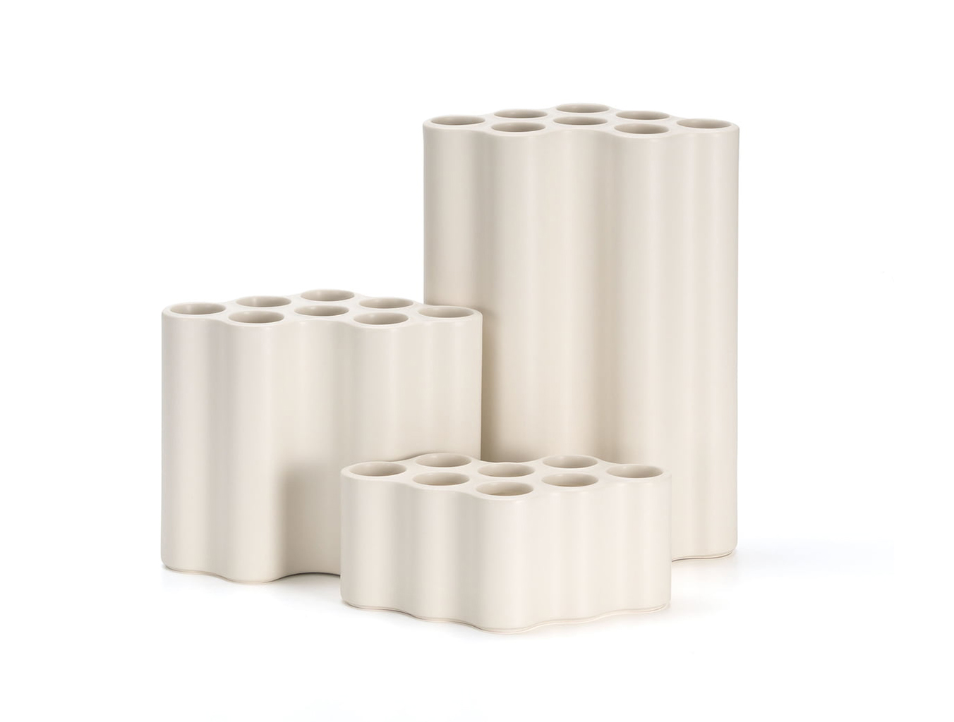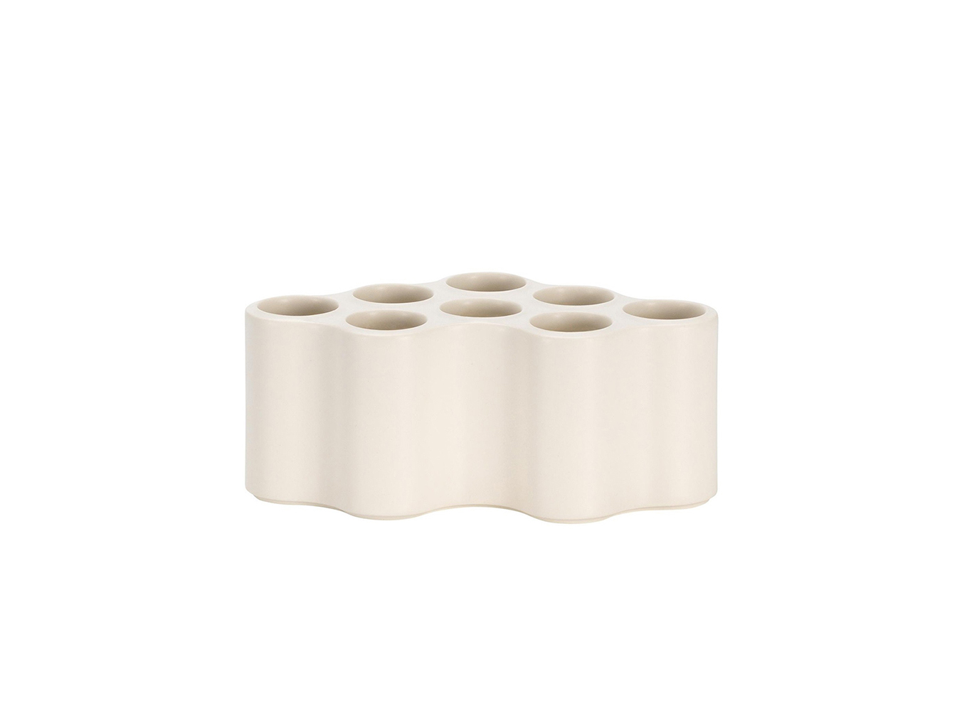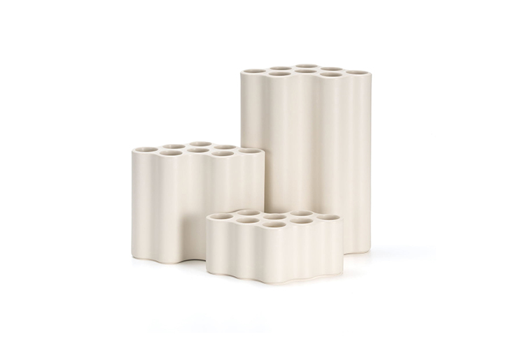 Nuage花瓶的形状于2002年首次出现在Ronan和Erwan Bouroullec的作品中。让人联想到云,这个图案最初是作为塑料货架模块生产的,可以分为集群或大规模配置。八个管状空腔刺穿模块化元件的平坦表面,同时还限定了模板的外部轮廓。多年来,Bouroullec兄弟已经改变了这种形状,并反复将其纳入他们的图形作品中。