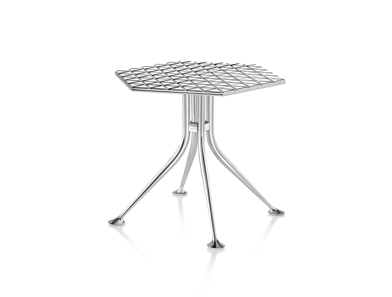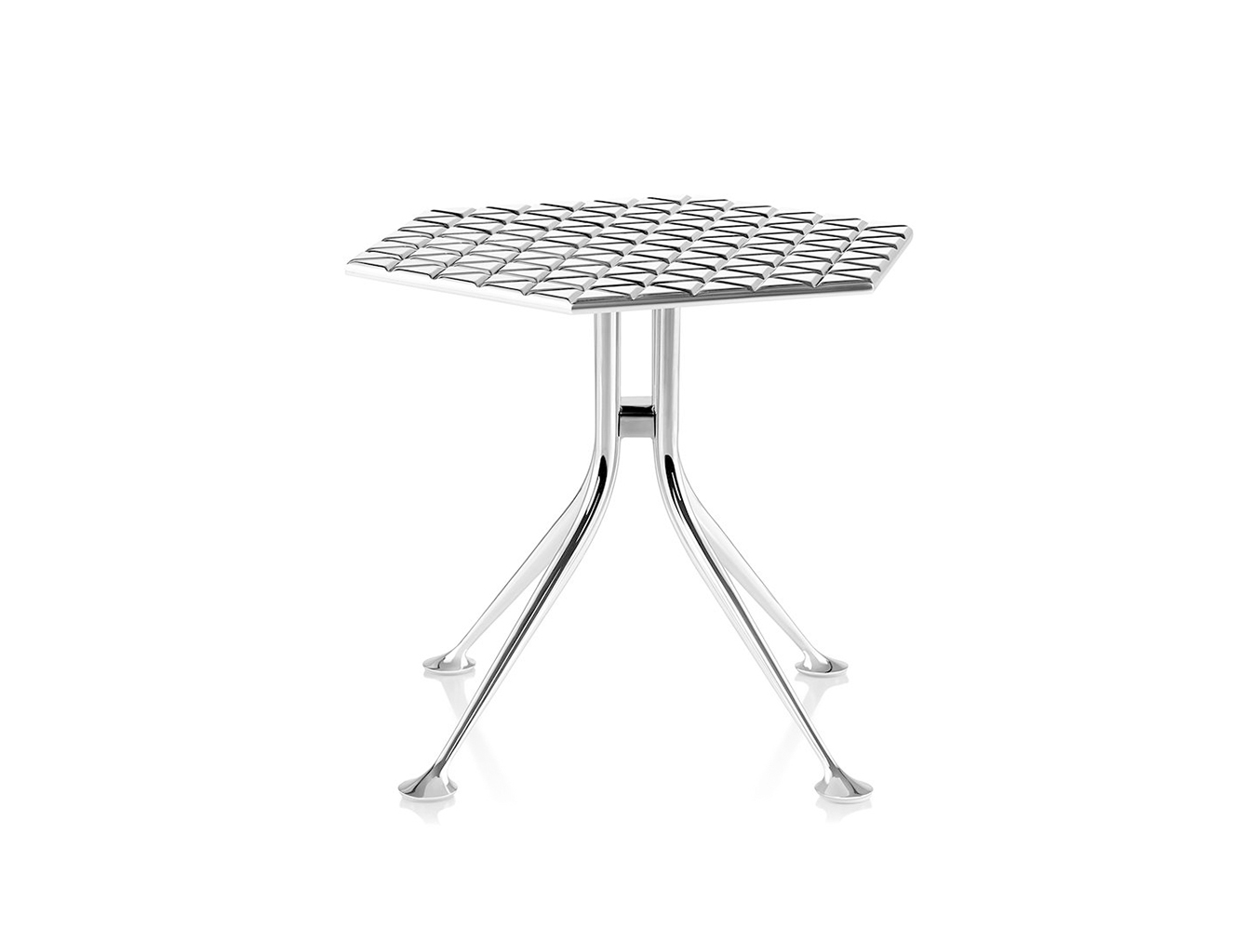 Girard被认为是面料、颜色、图案和纹理的大师级设计师。他的六角形桌子的铝制顶部刻有几何图案,在墙上的光线反射中可以看到。这种有趣的效果与Girard装饰性边桌的冷酷金属美学相得益彰。