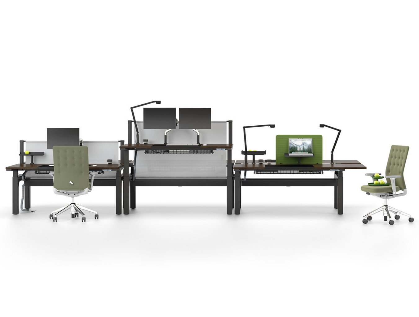 模块化办公桌系统CDS可以配置为单独的桌子,多个工作站的集群,宽敞的工作台或各种尺寸的会议桌。 所有产品均可在固定高度或手动或电动坐式解决方案中使用。 该系统采用标准底座设计,大部分预装有折叠腿。 这使得CDS能够满足对规划,使用,物流,装配和维护灵活性的最严格要求。