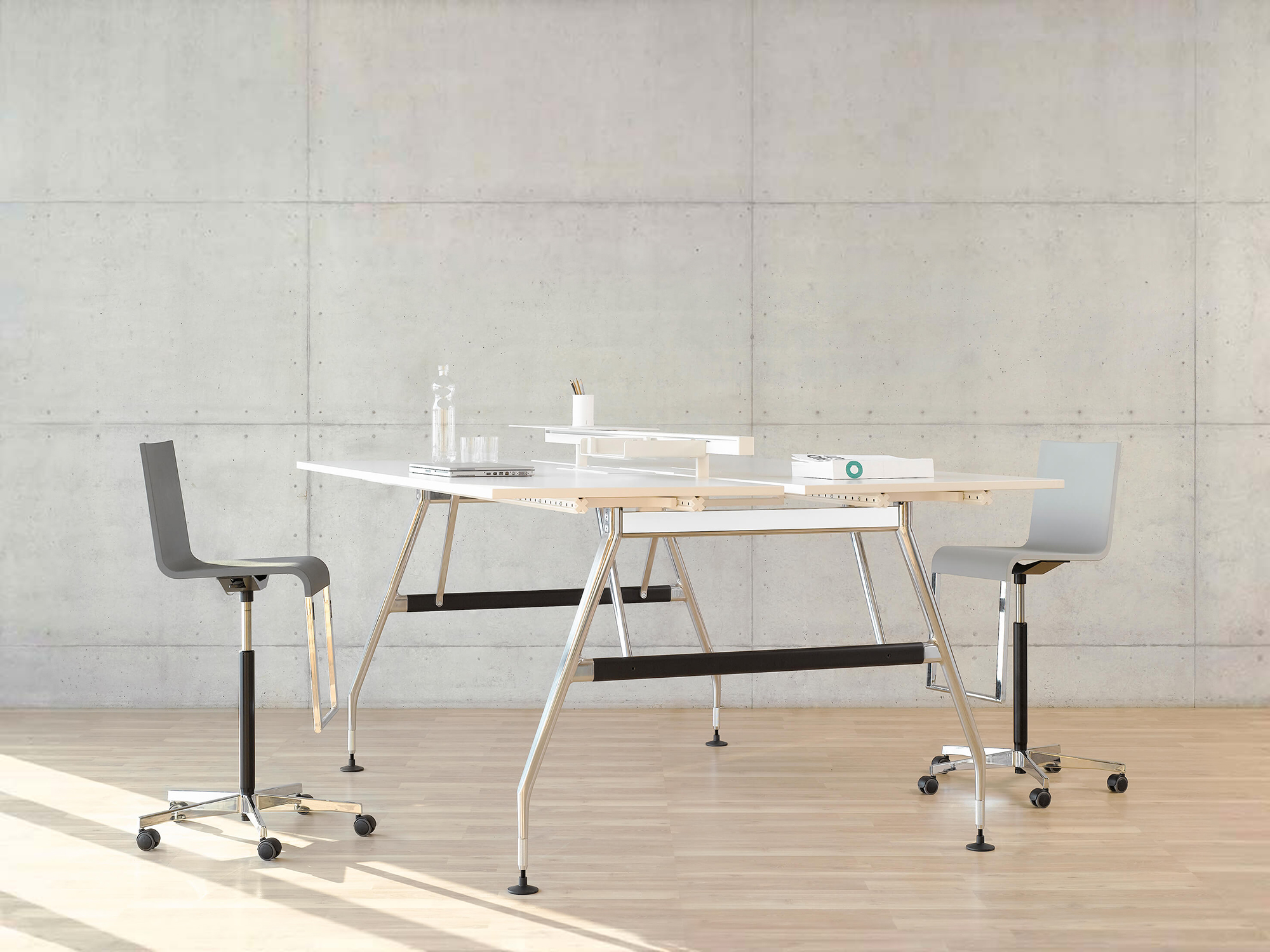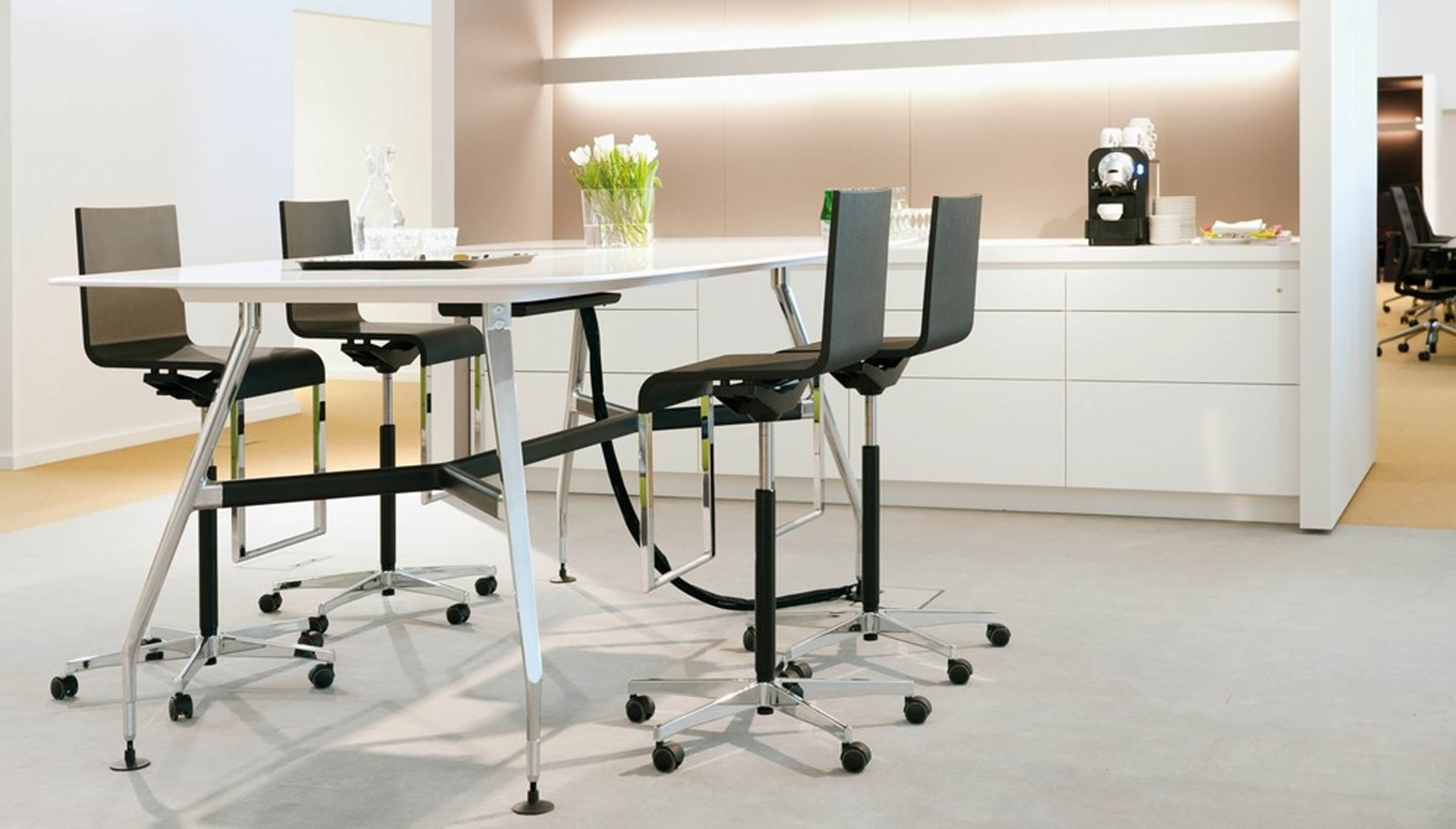 Ad Hoc Solitaires提供一系列可配置的会议桌和访客桌,为工作站的相关模块化家具系统提供补充。 Ad Hoc会议桌有各种尺寸,形状和表面材料。 它们可以配备电源和数据连接,并且像工作站一样,可以坐在站立高度和站立高度。 访客桌 - 应用范围从单个办公室的小型桌子到大型会议空间和公共区域的大型家具 - 是一个实用的附加装置,并配有滑动装置或脚轮。 根据会议的预期持续时间和所需的参与人数,可以选择高或低表格,其顶部有四种不同的形状和大小。 除了可用于Ad Hoc工作站的表面选项外,Ad Hoc Solitaires还采用极其耐用的聚合物混凝土材料生产。