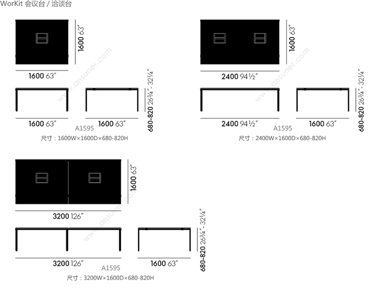 WorKit 会议台/洽谈台 系列尺寸/示意图