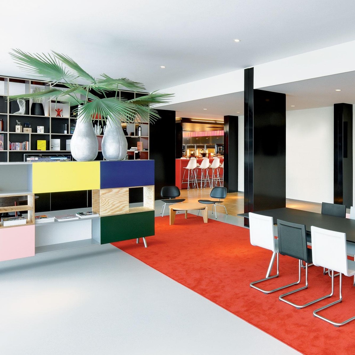 模块化结构,Kast存储单元以侧板作为基本版本开始。 对于中等高度版本,第二个基本模块放置在顶部以创建架子/壁柜组合。 在最高的版本中,添加了两个简单而坚固的木质元素。 Maarten Van Severen特别关注滑动门的颜色,这不仅强调了Kast的比例,而且给人一种清新和乐观的感觉。