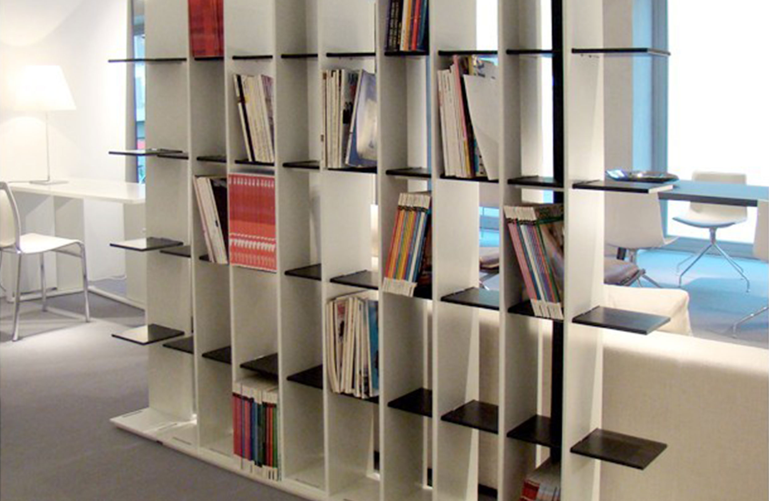 培养箱 -图书馆与中间轴和不同高度的它是基于一个模块化的系统,使解决方案“来衡量”任何不同必要性家具上。