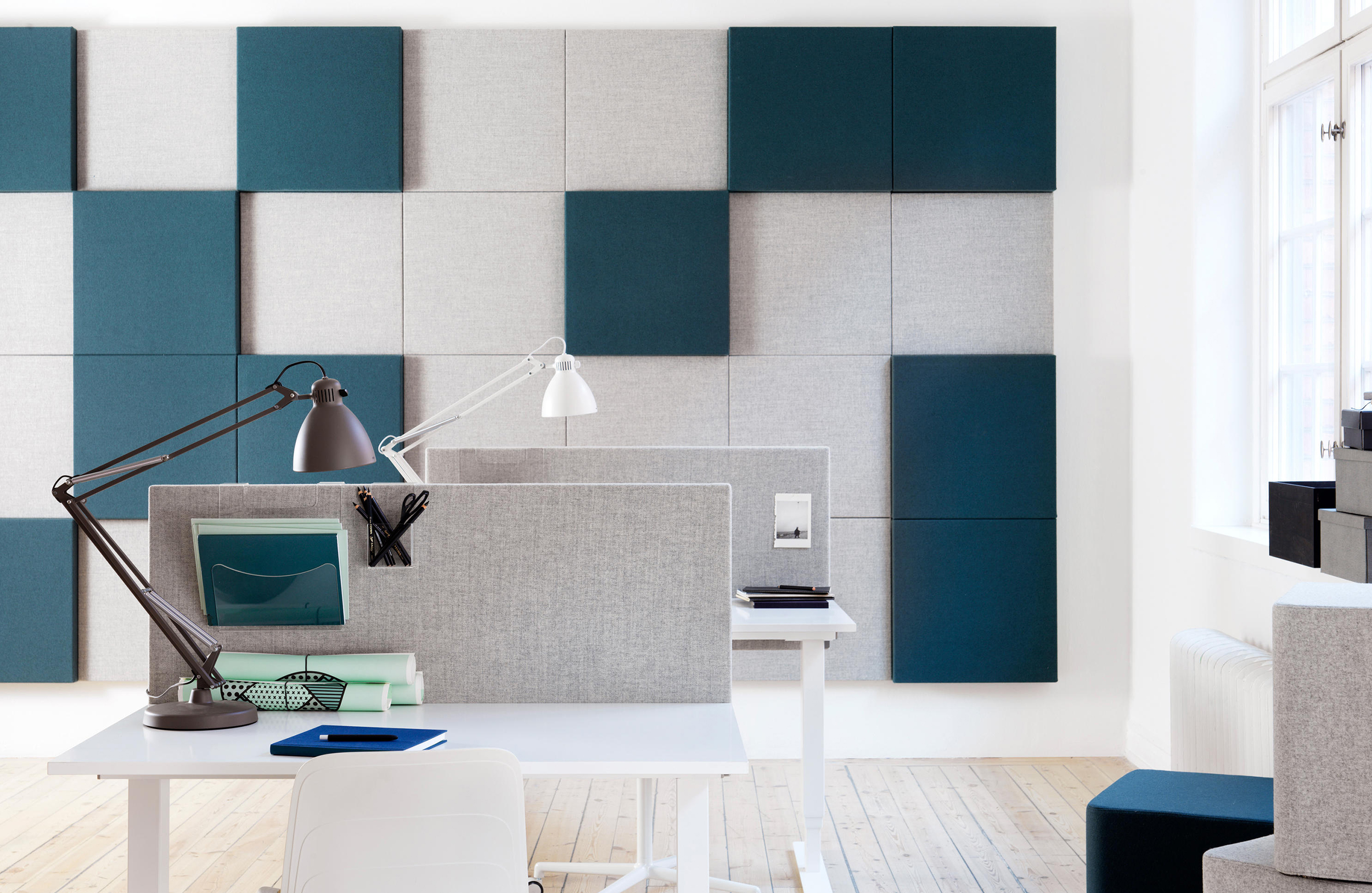 Soneo Wall提供具有吸音方块的功能性创意。由于其时尚,不引人注目的设计,它可以覆盖更大的墙壁区域,从而融入环境。可以使用Soneo Wall的颜色和相对定位创建令人兴奋的阵型。方形墙模块可以组合以创建不同的图案形式。每个模块包括安装在木框架上的吸音再生聚酯填料。两侧均采用布料。背面配有黑色面料作为标准配置。安装在钢制墙托架上。