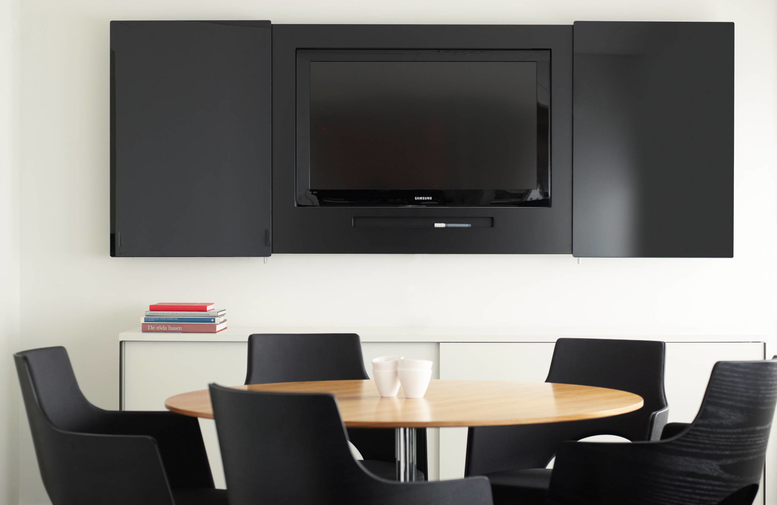 关闭显示屏幕并没有什么特别吸引人的地方。Fredrik Wallner在设计Messenger时显然有这个不可否认的事实 - 这是一个用于各种类型电视屏幕的干净风格的音箱。其釉面磁性滑动门使其可以作为优雅的书写板同时运作。
