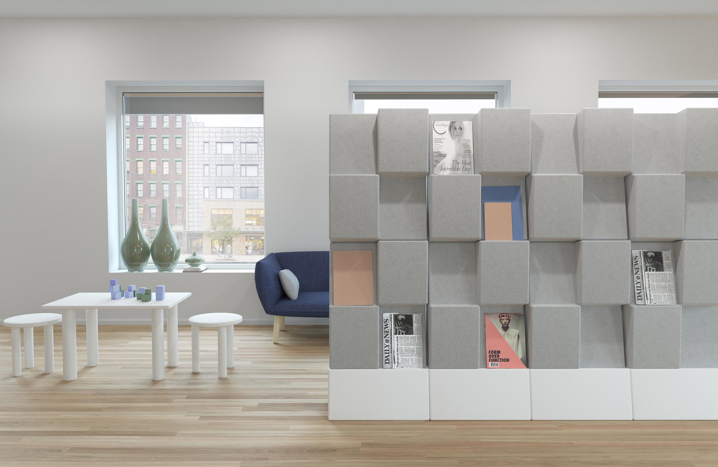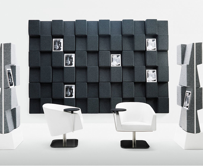 窗口是一个杂志展示架,充当吸音器,或充当杂志展示架的吸声器。由于采用模块化设计,Window可根据所需尺寸进行定制。窗户包括模制毛毡,内部带有吸音再生纤维板。使用隐藏式墙壁支架安装在墙上。提供2x2或3x3模块。
