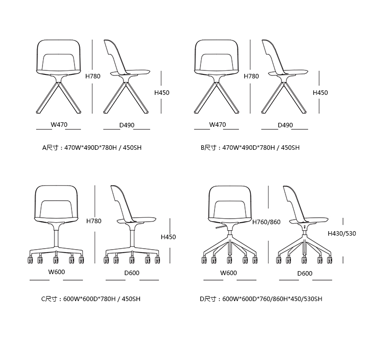 ARCO职员椅/洽谈椅 系列尺寸/示意图