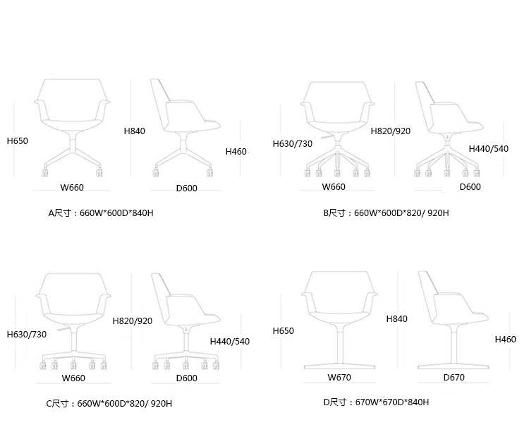 B:660W*600D*820/ 920H