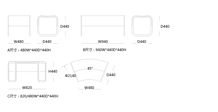 ZA SYSTEM 洽谈椅/餐椅 系列尺寸/示意图