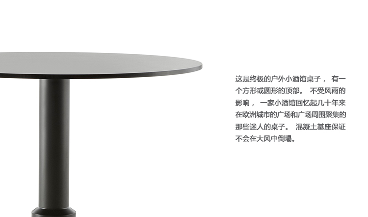 这是终极的户外小酒馆桌子,有一个方形或圆形的顶部。不受风雨的影响,一家小酒馆回忆起几十年来在欧洲城市的广场和广场周围聚集的那些迷人的桌子。混凝土基座保证不会在大风中倒塌。