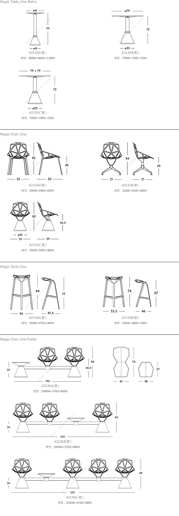 Magis 系列尺寸/示意图