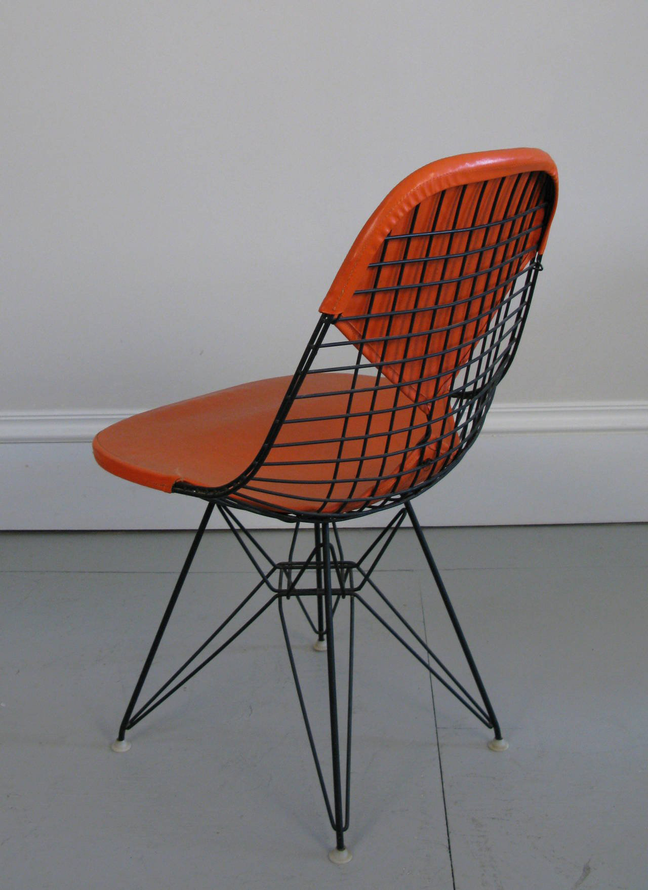 DKR 單椅結合了 Wire Chair 的網狀金屬椅座搭配鐵塔椅腳。