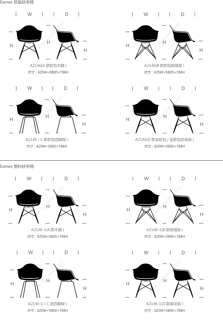 Eames® 系列尺寸/示意图
