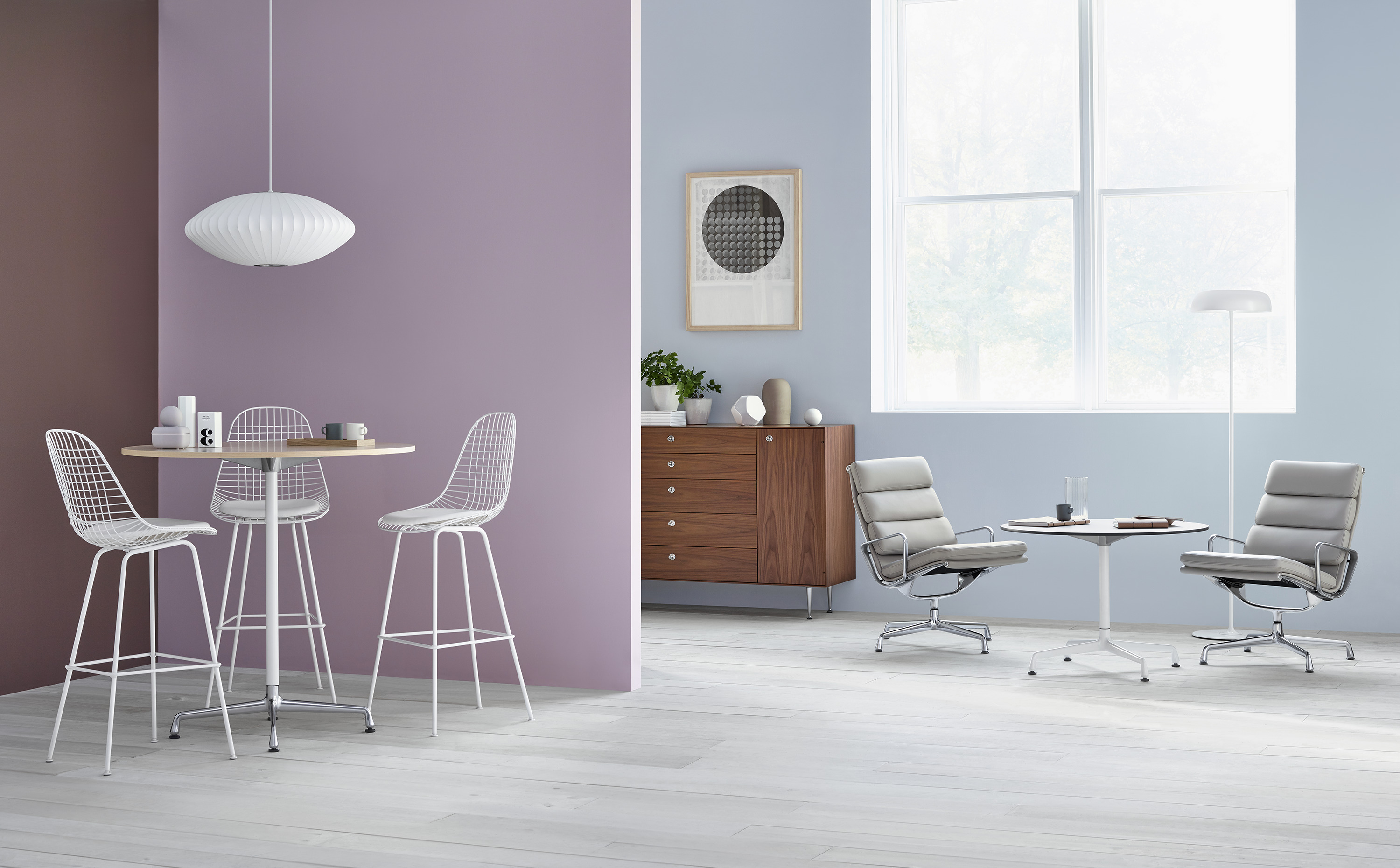 Charles & Ray Eames 1951 年發表的 Wire Chair 系列,以一片式有機網狀椅座,延伸變化出一系列不同椅腳及座墊搭配的單椅,這系列椅款輕巧透明的設計,在 60 年代可說是運用了當時最先進的技術來製作,靈感則是來自於鏤空的金屬收納籃,金屬條交織的椅座,彎曲的弧面不僅符合人體工學,在視覺上更具有穿透性。