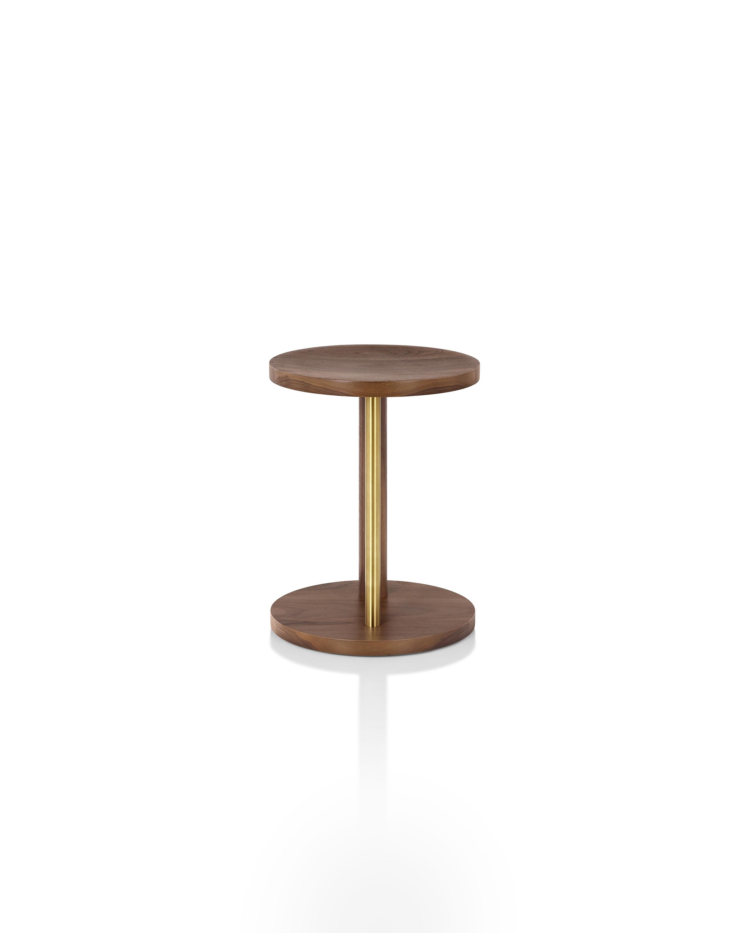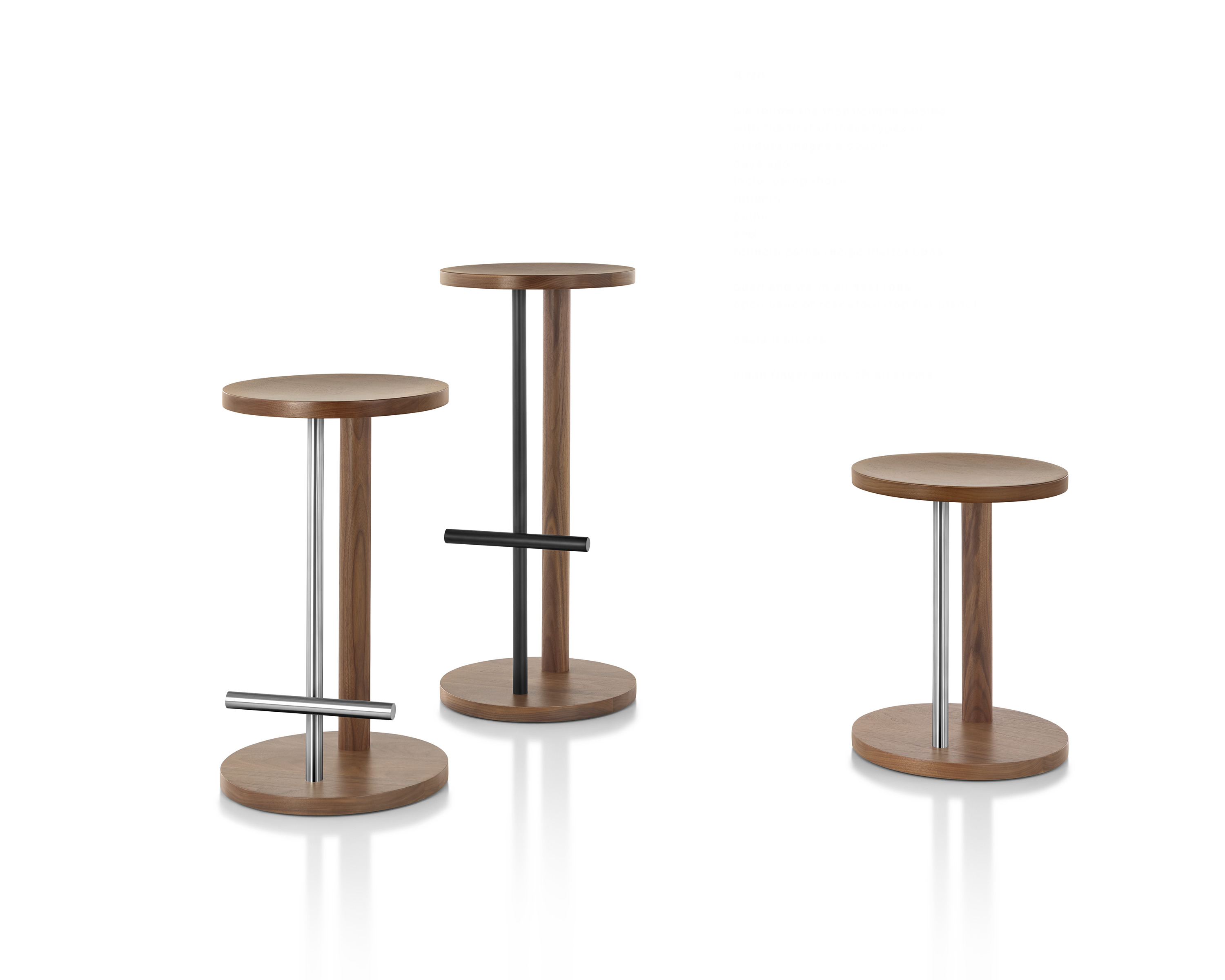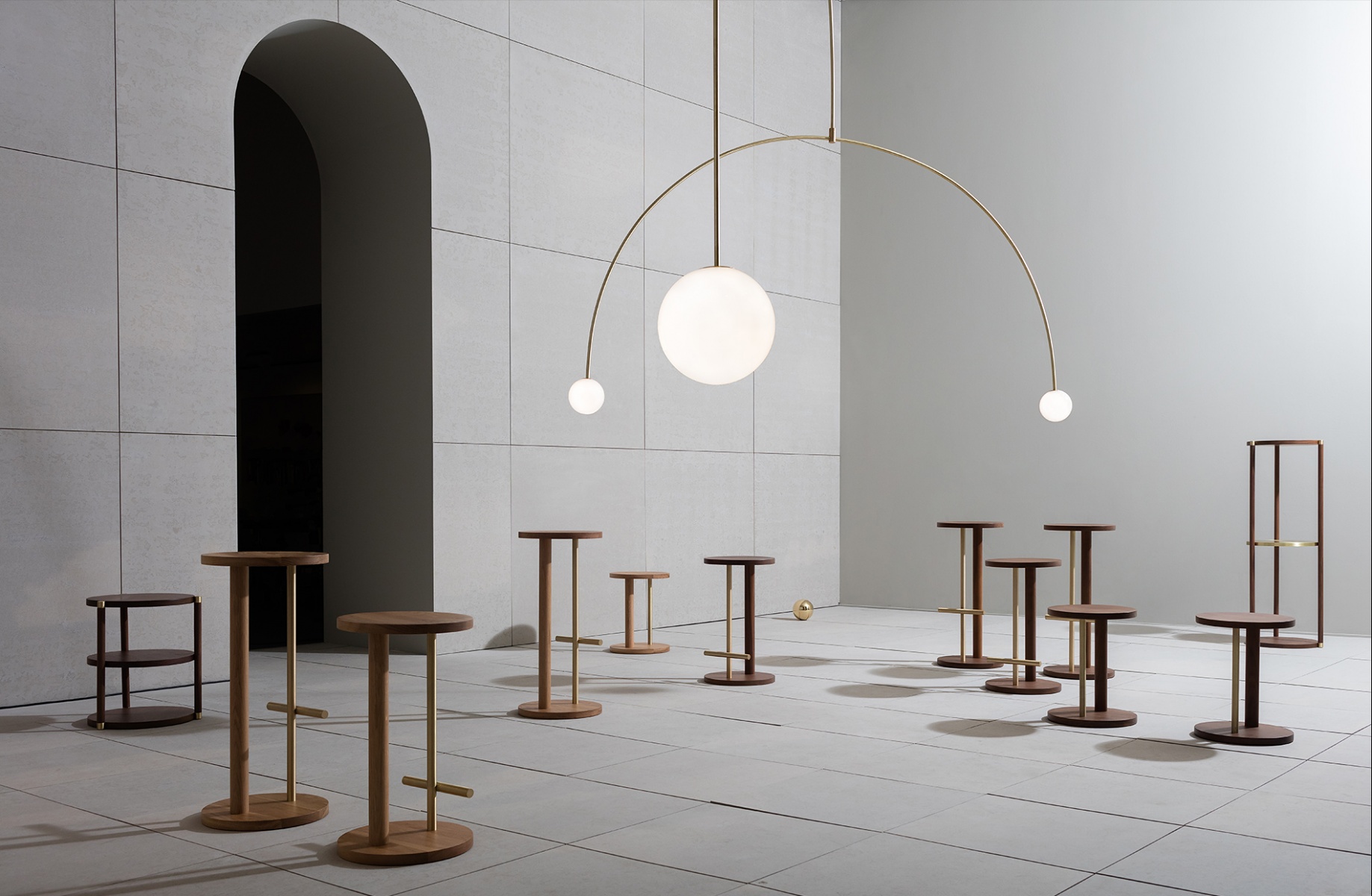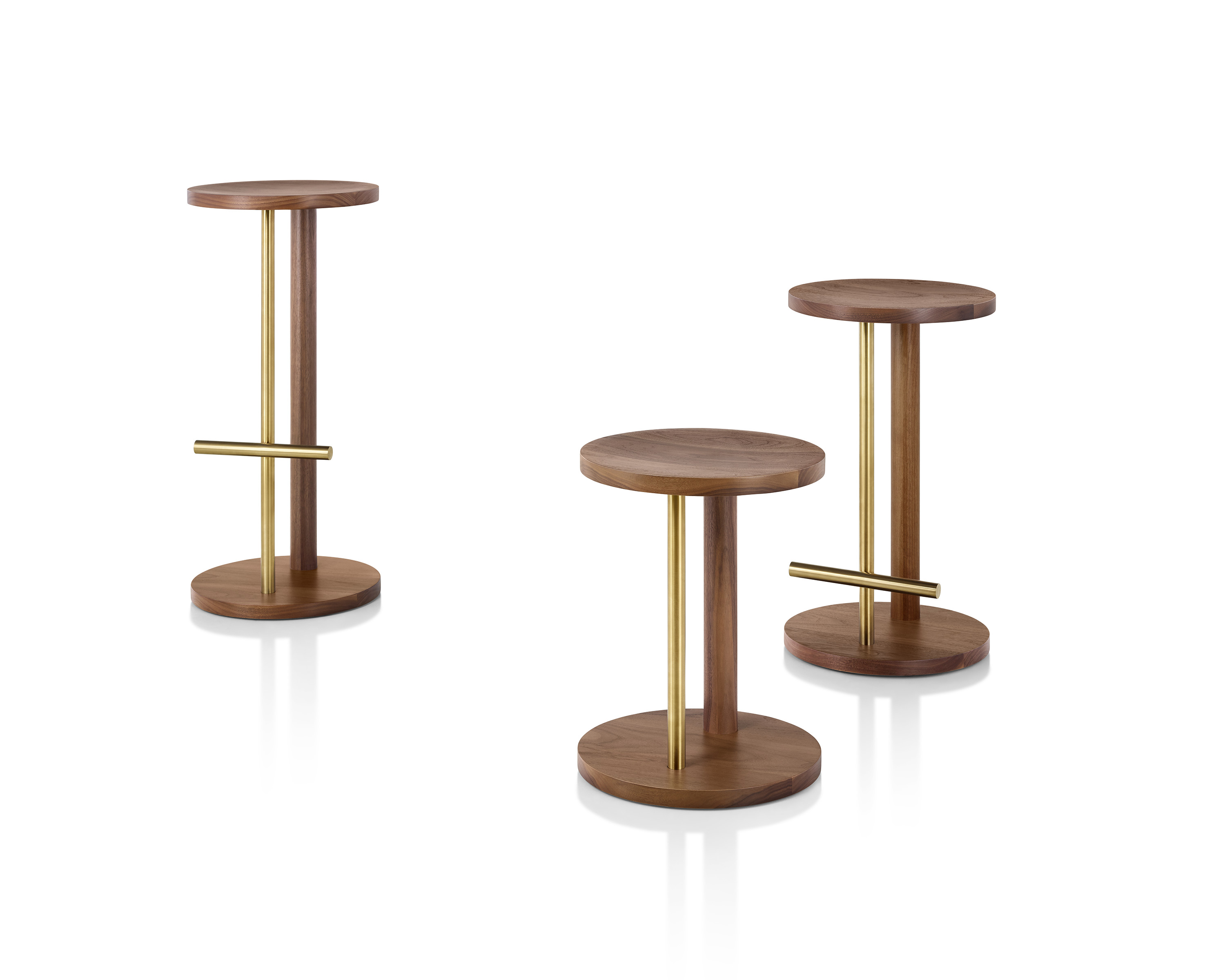 一个解构圆柱形形状提炼到其裸露的必需品, 由迈克尔 Anastassiades 设计的专凳有一个纯度的形式和诚实的材料, 已成为设计师的签名。一个圆形的座椅和底座由两个平行的腿在木和金属的亲属配对举行。